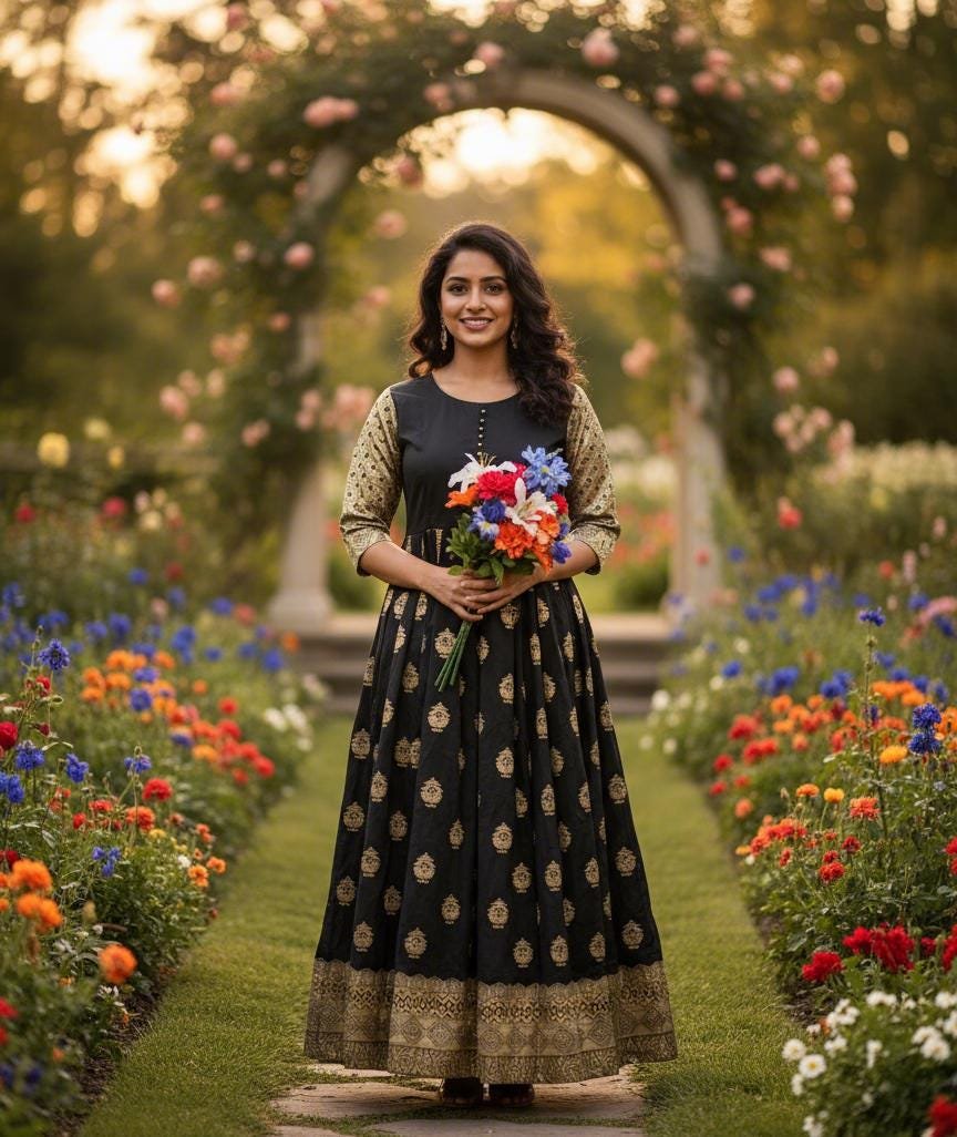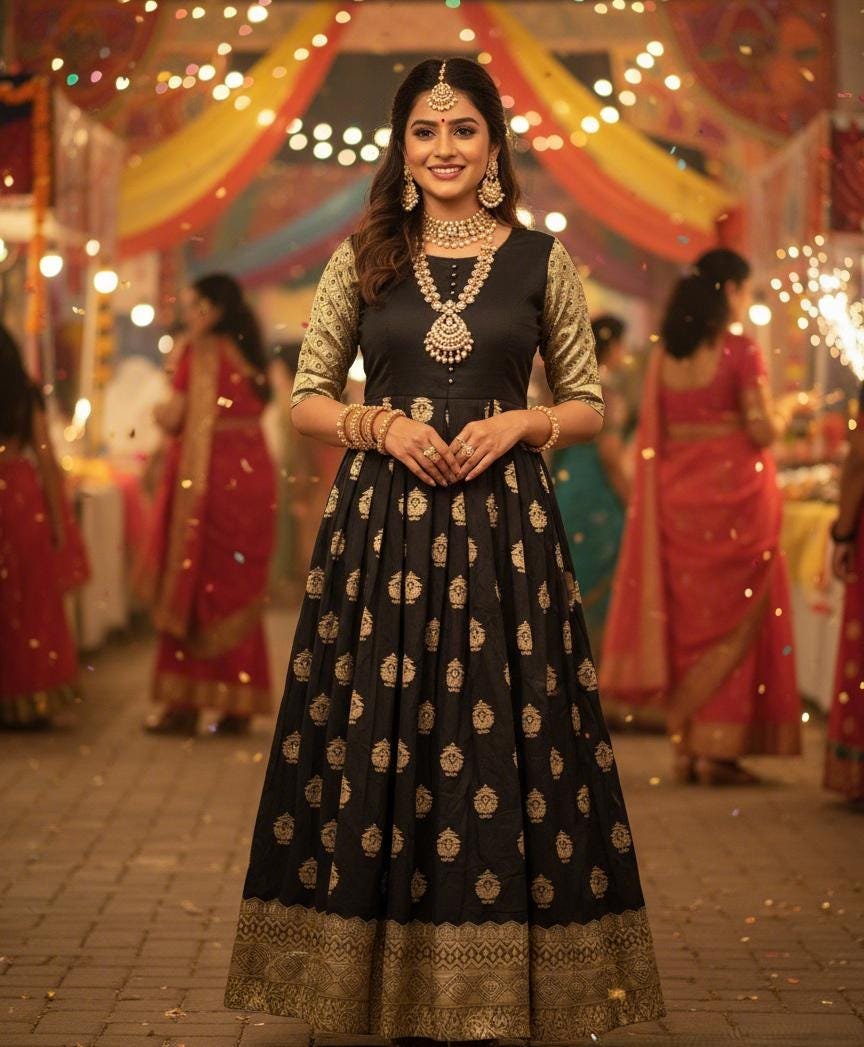 Rich Fabric: The gown is made from a high-quality Art Silk Blend fabric that mimics the luxurious texture and shine of pure silk.