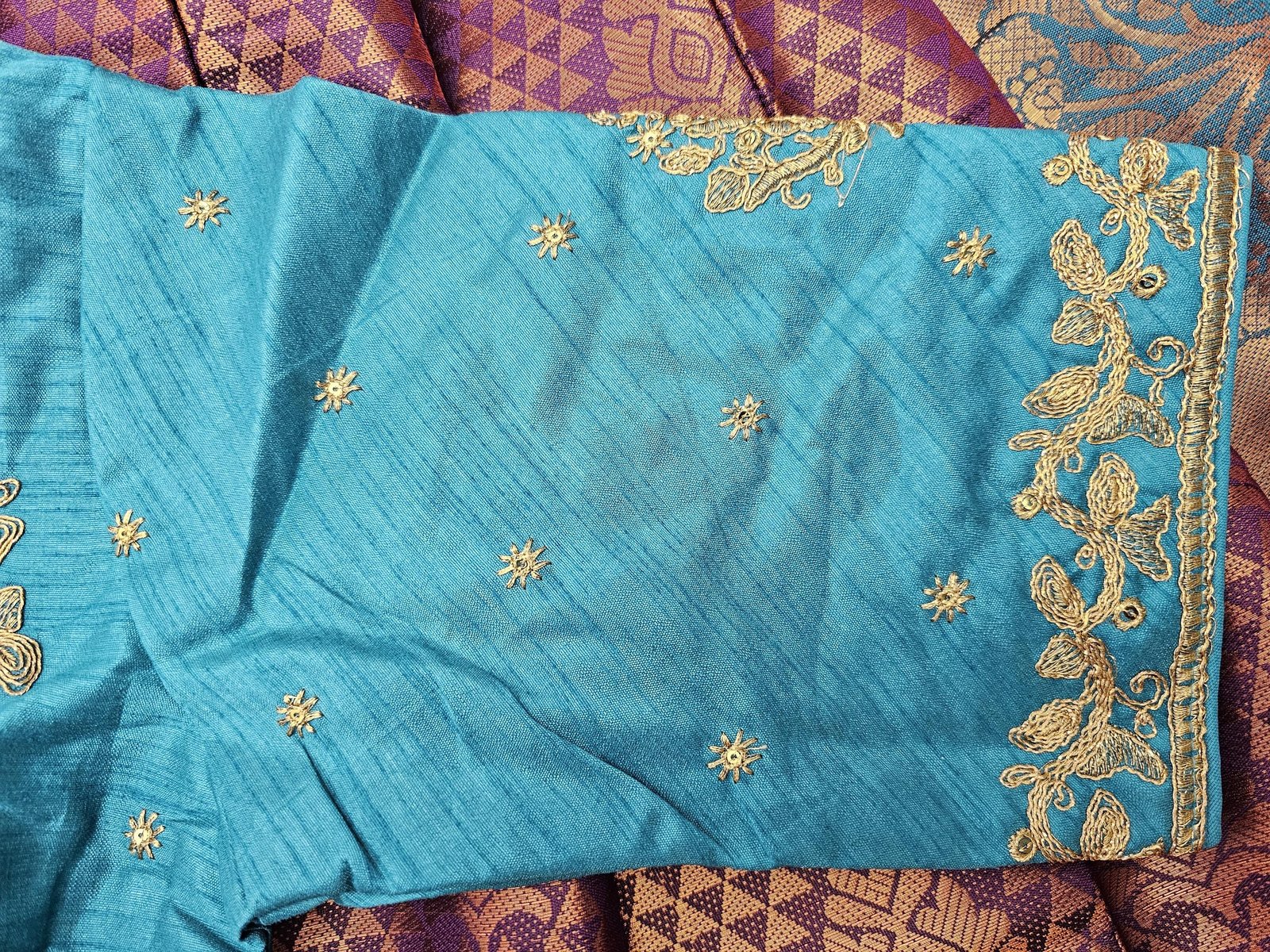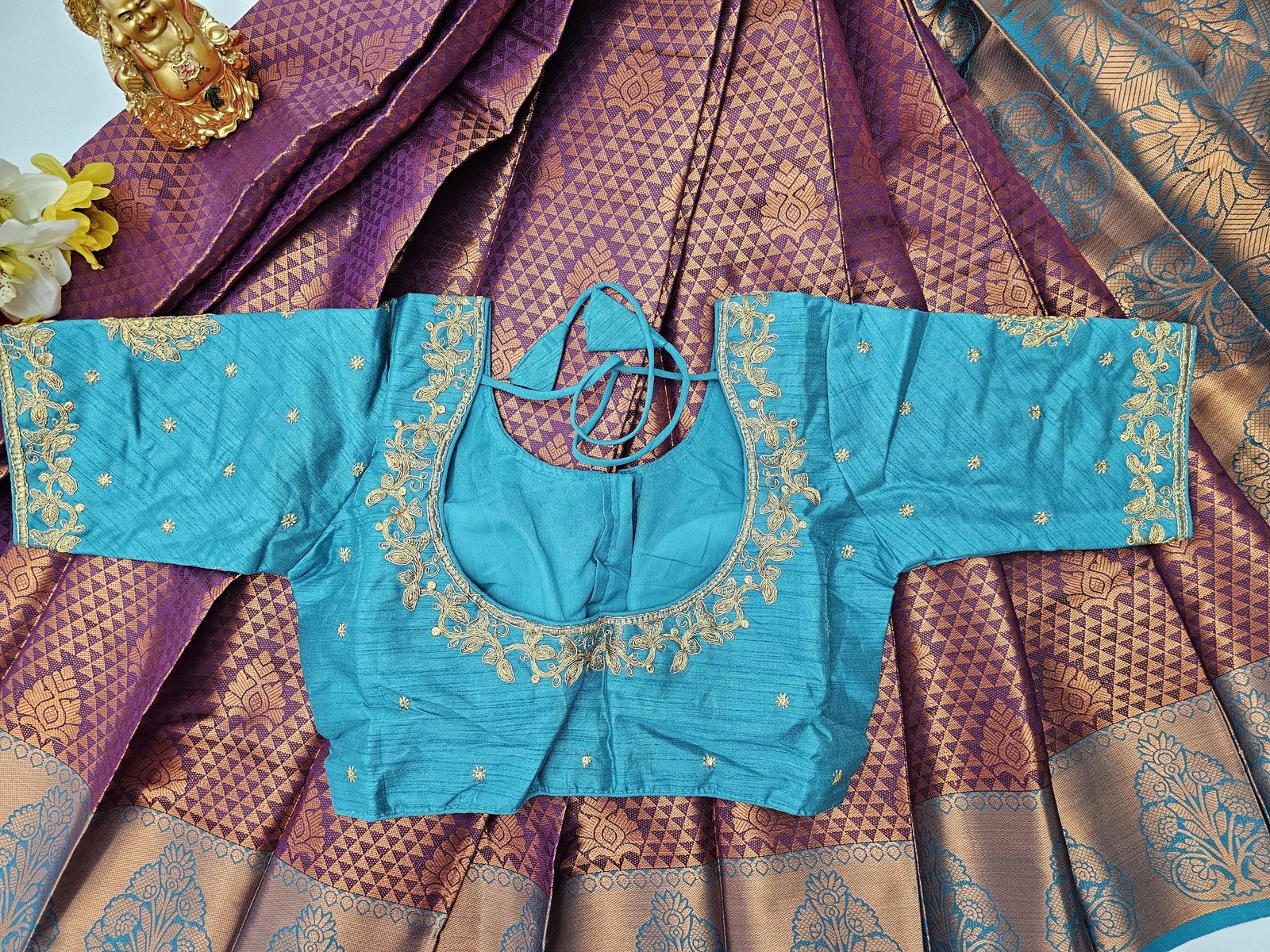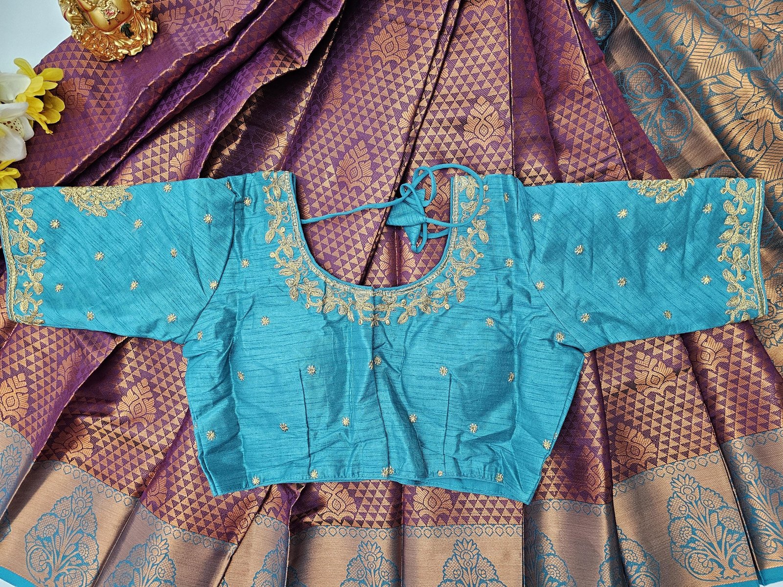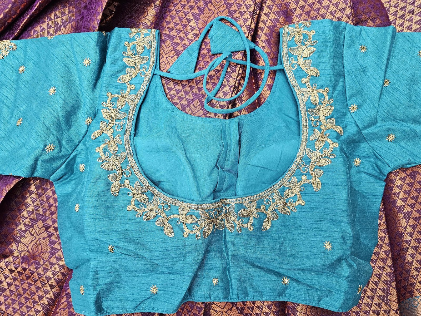 BLOUSE : BEAUTIFUL STITCHED DESIGNER BORDER BLOUSE WITH DANGLINGS.