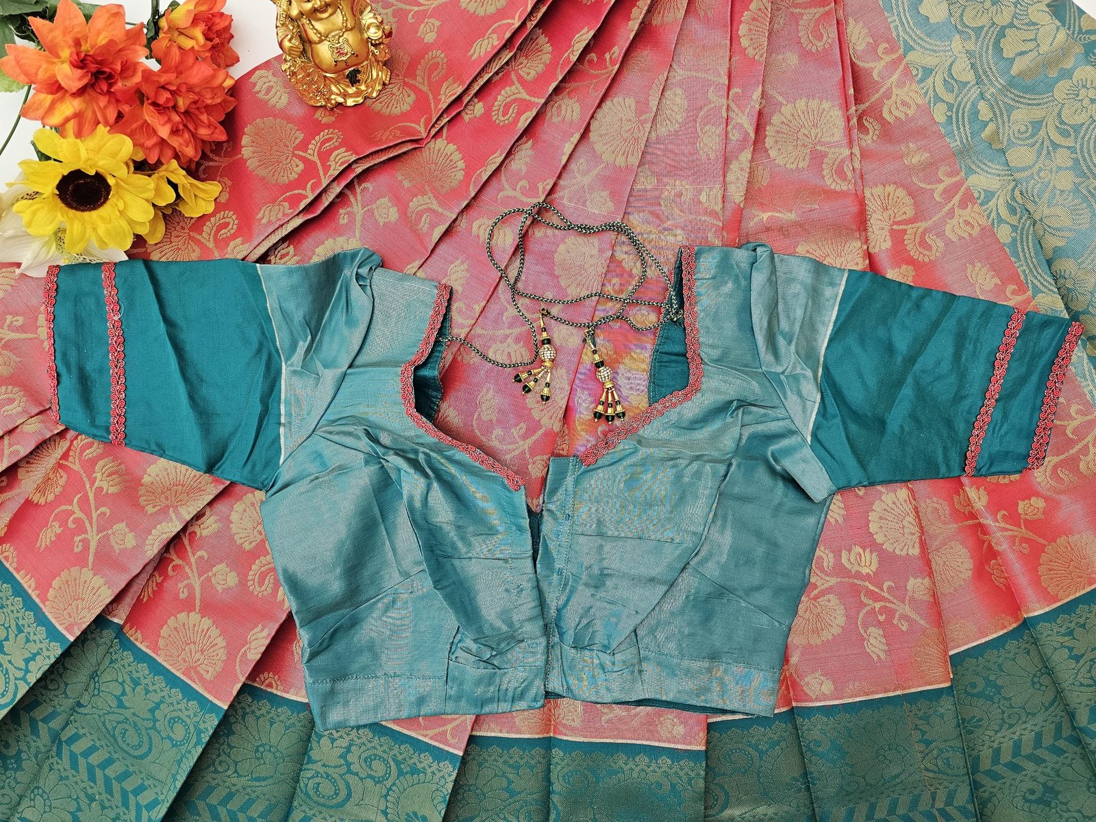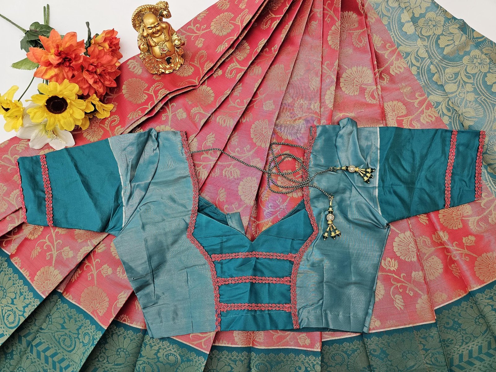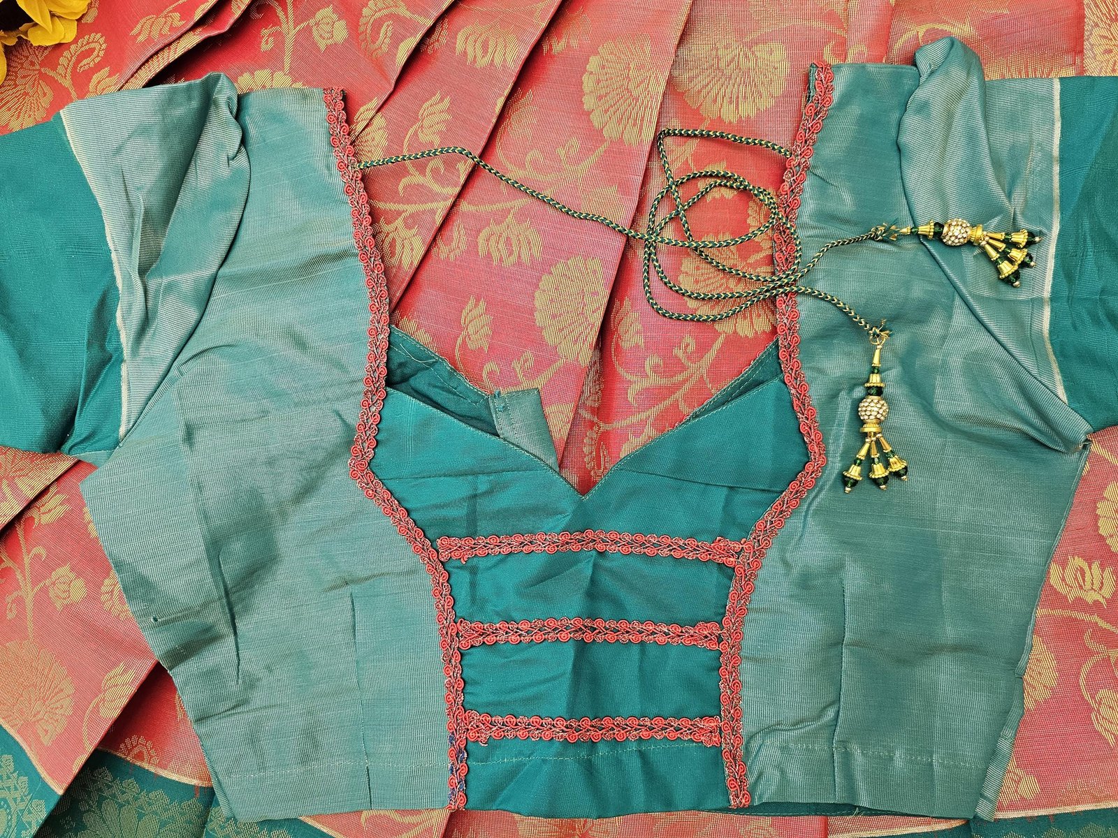 BLOUSE : BEAUTIFUL STITCHED DESIGNER BORDER BLOUSE WITH DANGLINGS.