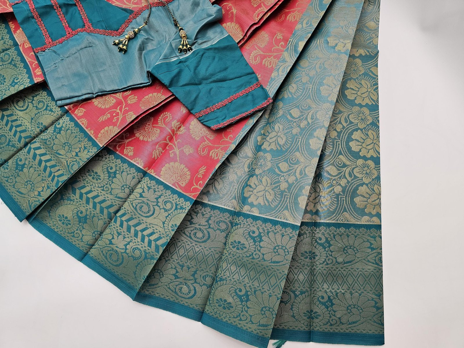 Fabric. :- Soft Tissue Silk with Fancy Border