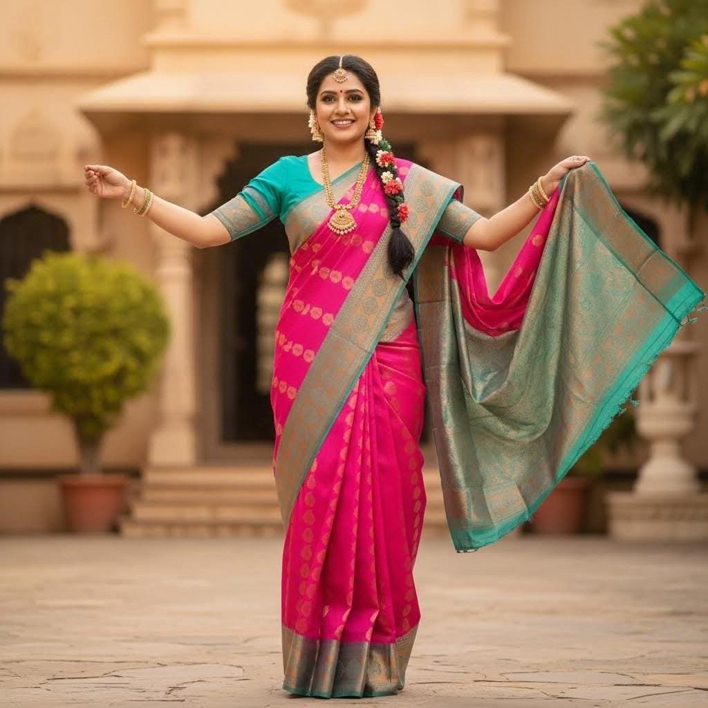 DESIGN : BEAUTIFUL RICH PALLU AND DESIGN ON ALL OVER THE SAREE.