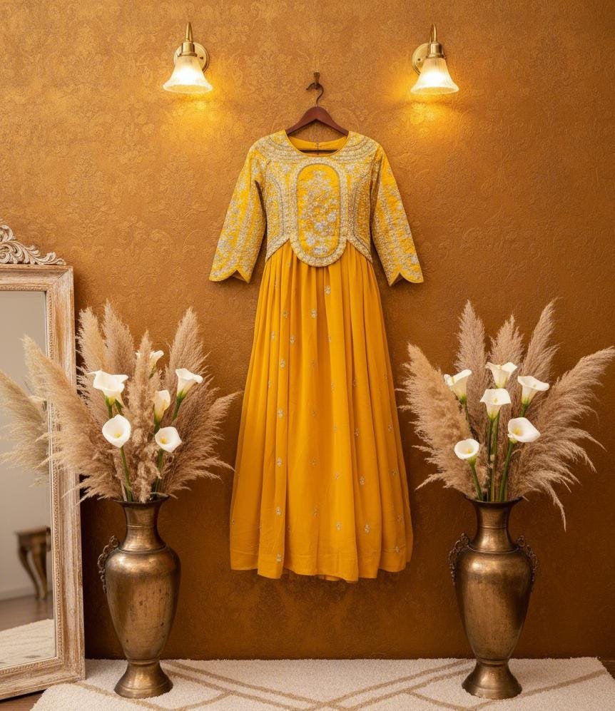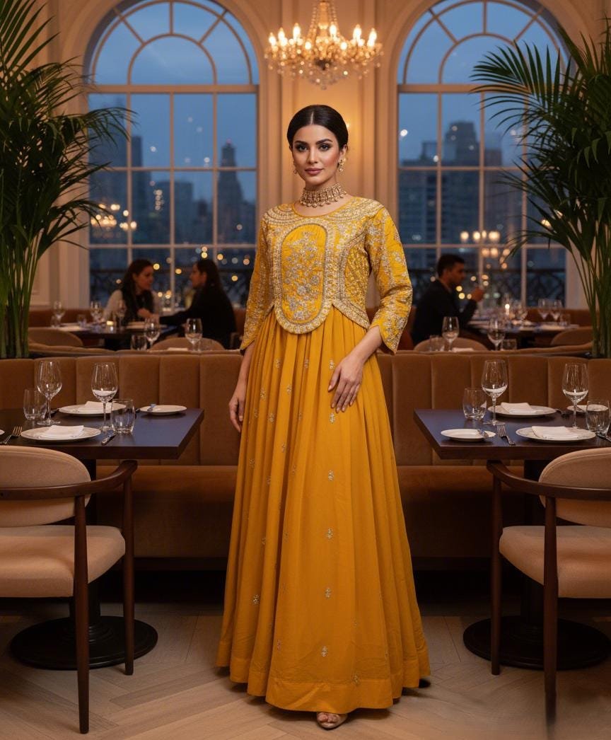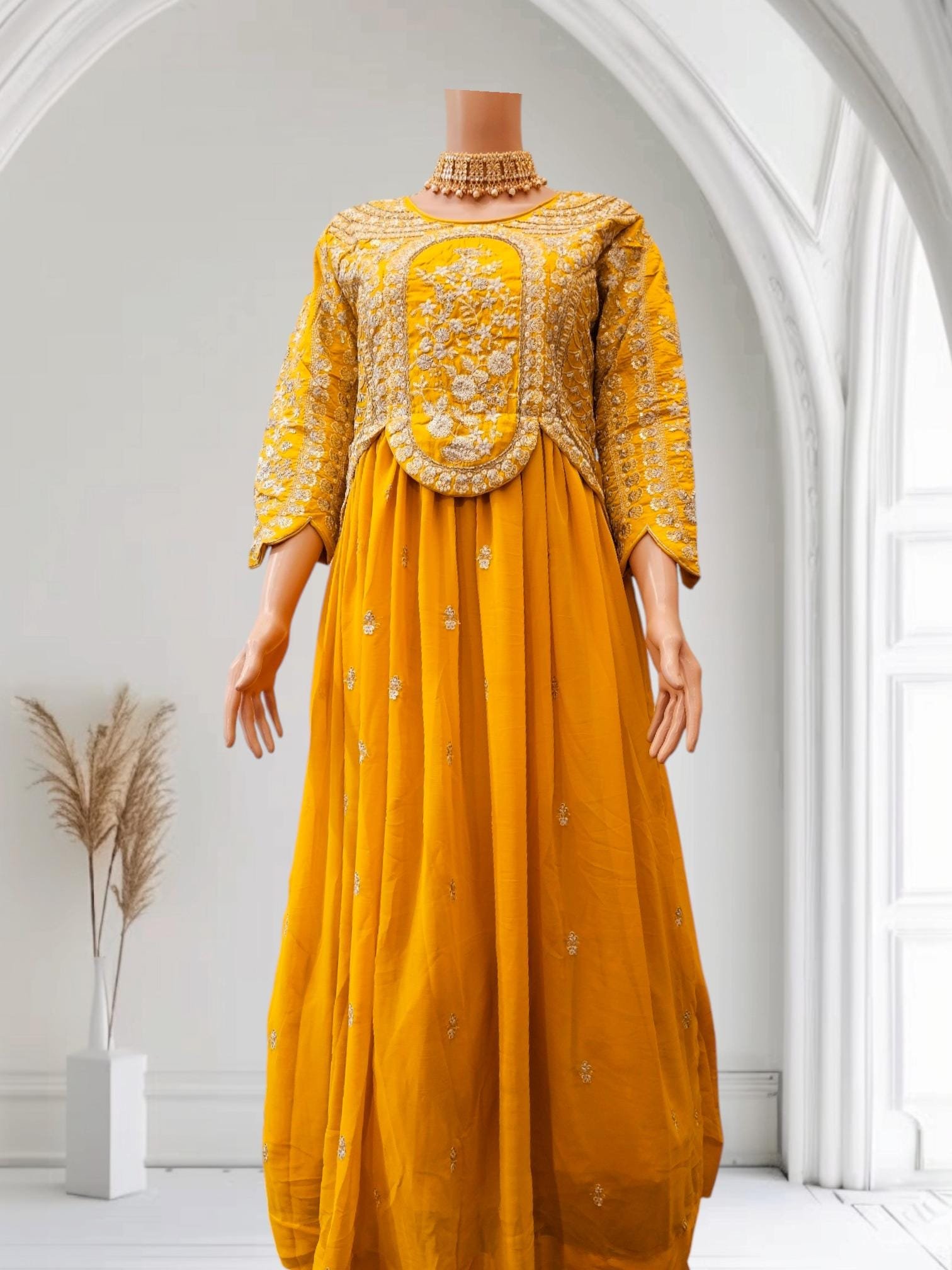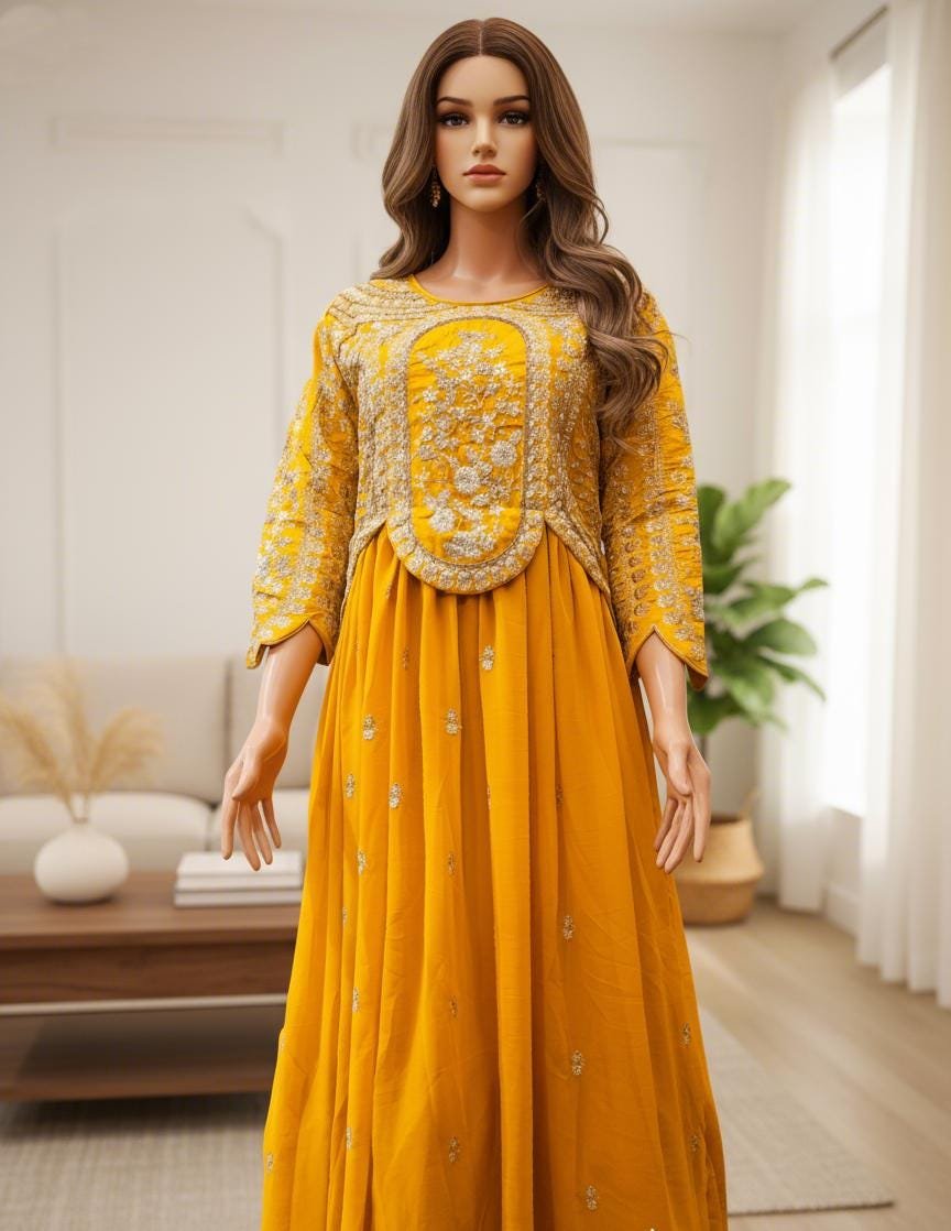Fully Stitch Ready made Women Party Wear Designer Long Gown - YellowFully Stitch Ready made Women Party Wear Designer Long Gown – Yellow