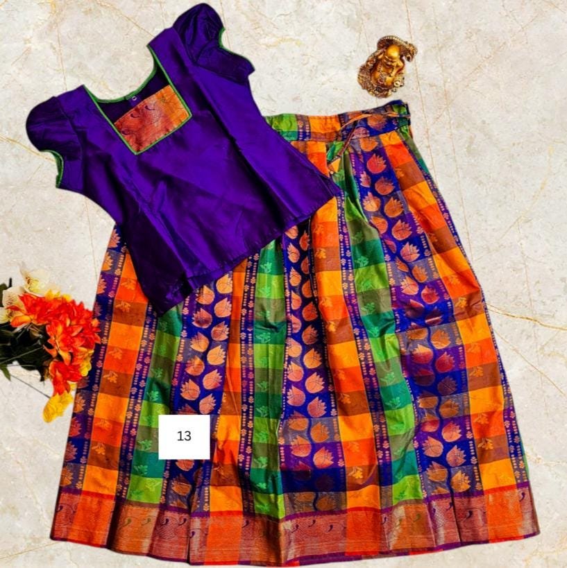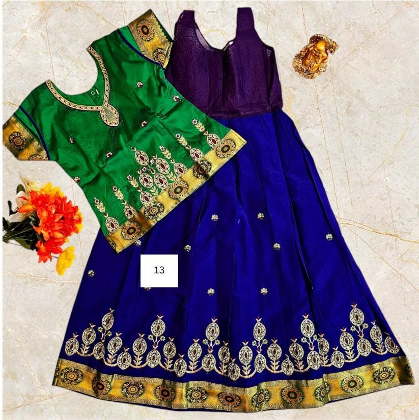 Girls' Silk Lehenga Choli Set: Indian Ethnic Pattu Skirt with TopGirls’ Silk Lehenga Choli Set: Indian Ethnic Pattu Skirt with Top