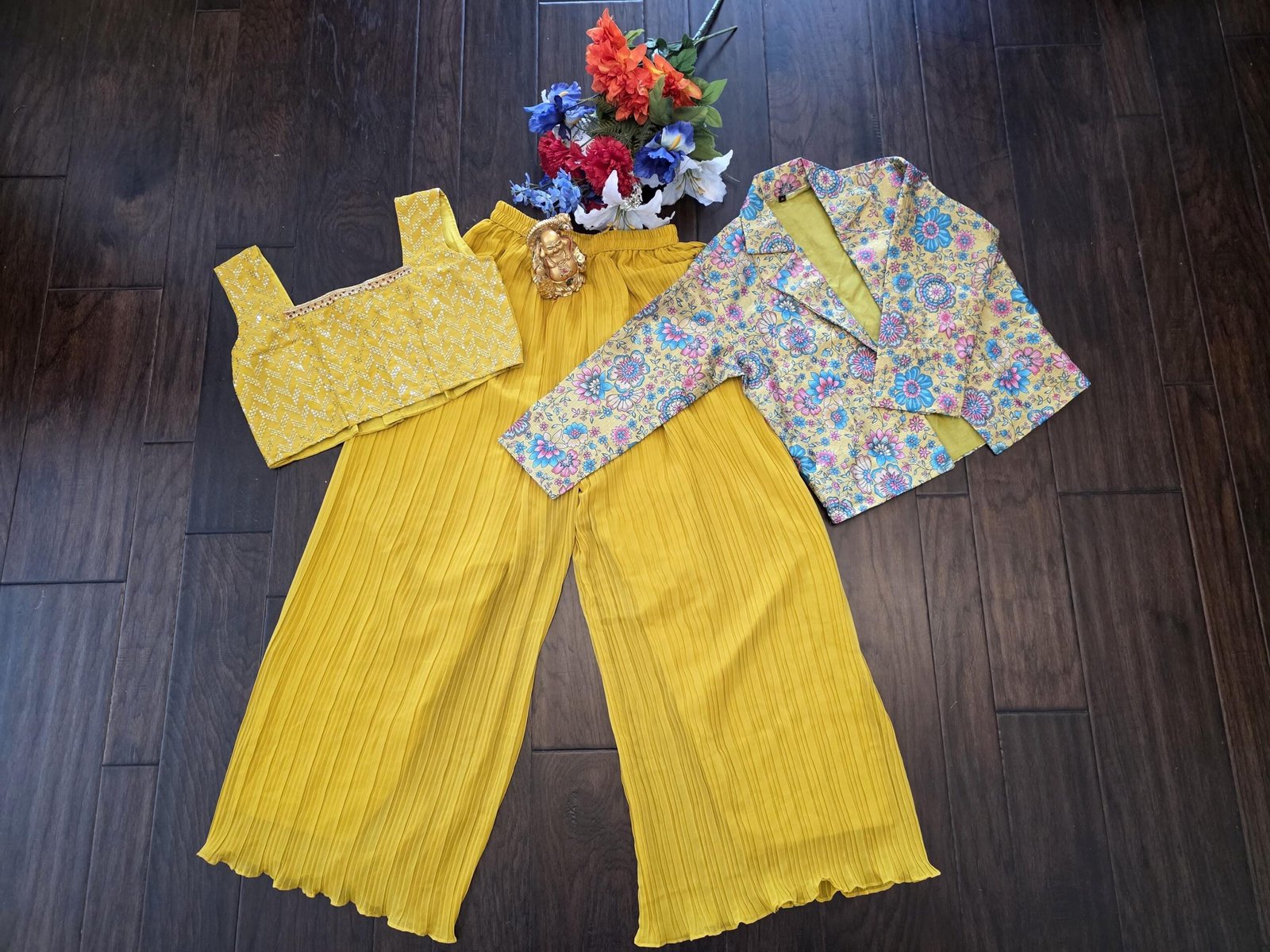 ✔ Yellow Pleated Palazzo Pants – Stretchy, flowy, and super comfortable for kids