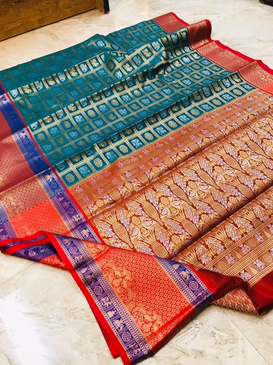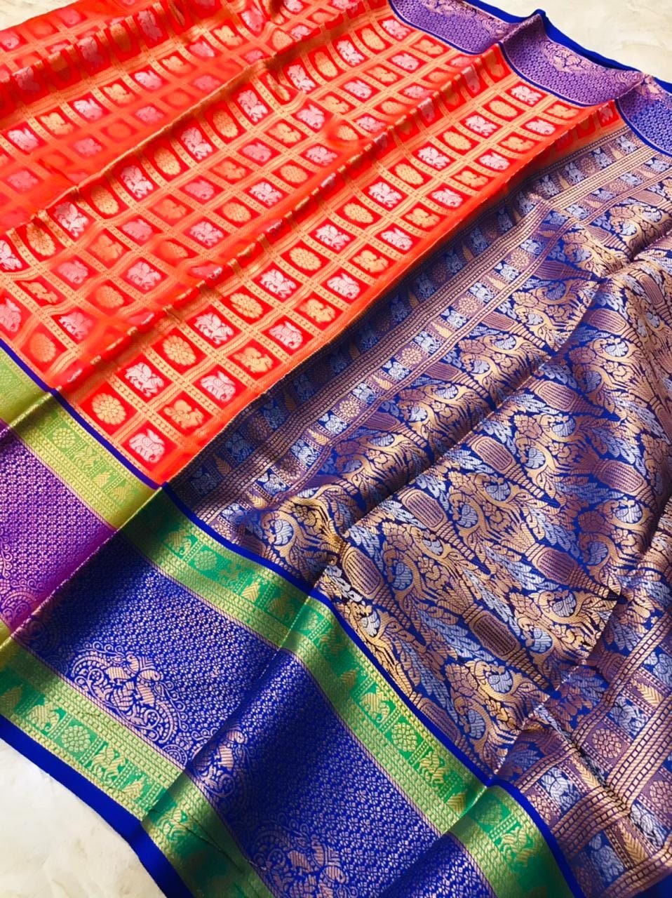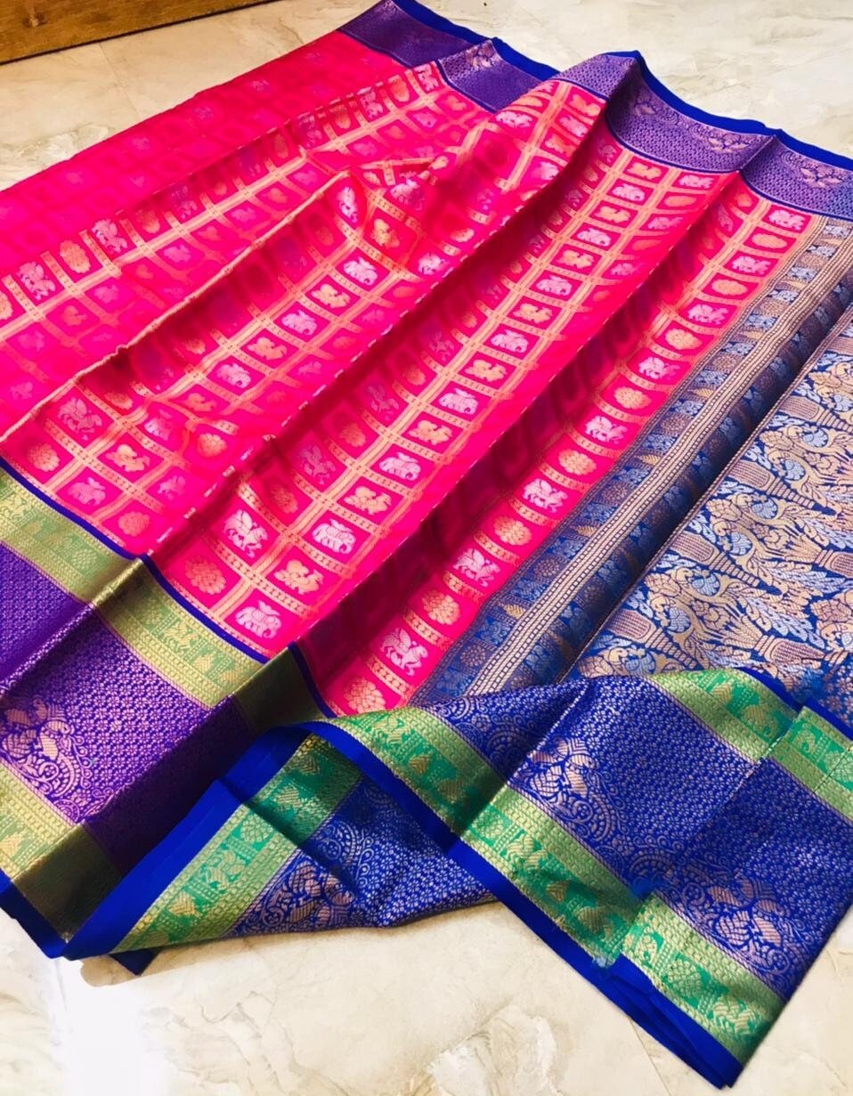 DESIGN : BEAUTIFUL RICH PALLU AND JACQUARD WORK ON ALL OVER THE SAREE.