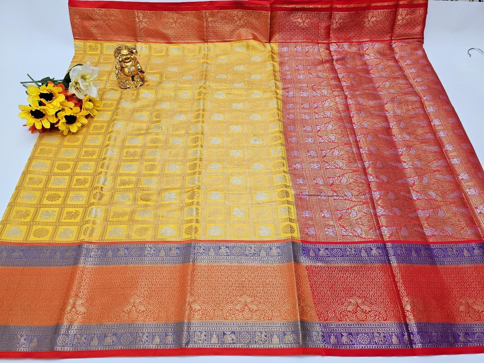 To ensure the longevity of this beautiful saree, we recommend dry cleaning only. The high-quality Kanchi silk fabric and detailed weaving work require careful handling to maintain their beauty over time. This product embodies the handcrafted quality, creativity, and authenticity that Etsy stands for. When you purchase this saree, you’re not just buying a piece of clothing, but a piece of art that carries the rich heritage of Indian textile craftsmanship. Stand out at your next event with this unique and beautiful Pure Kanchi Silk Weaving Saree.
