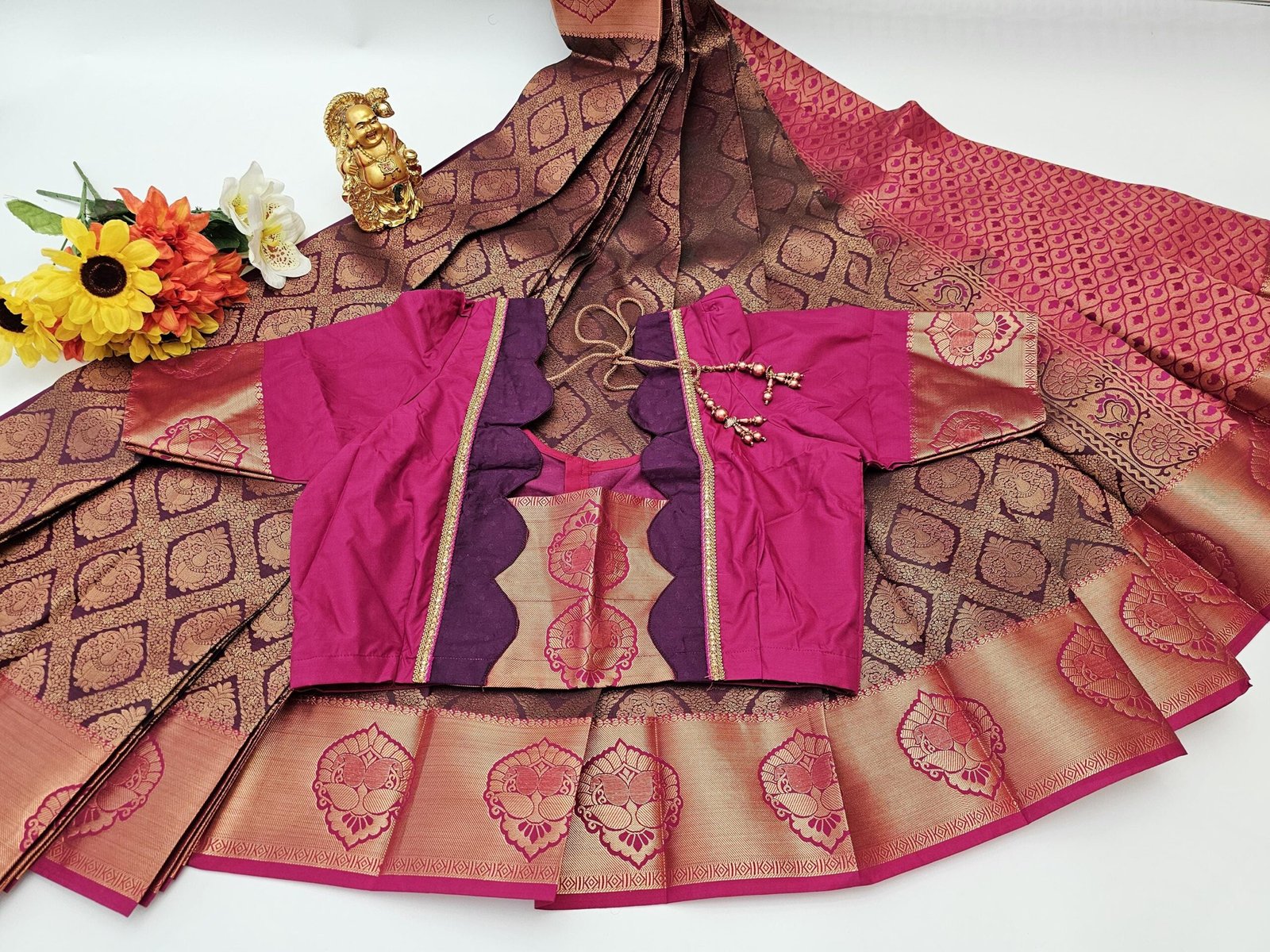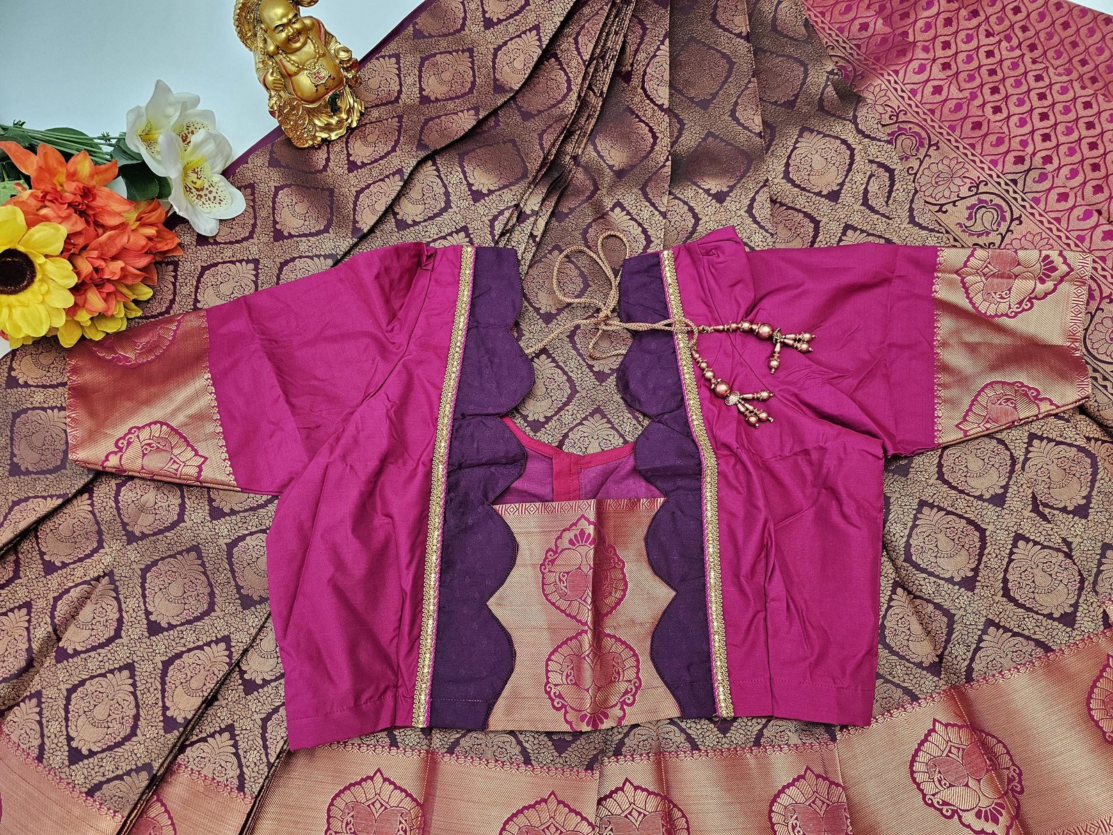 Maroon Silk Saree: Weaving Work, Stitched Blouse