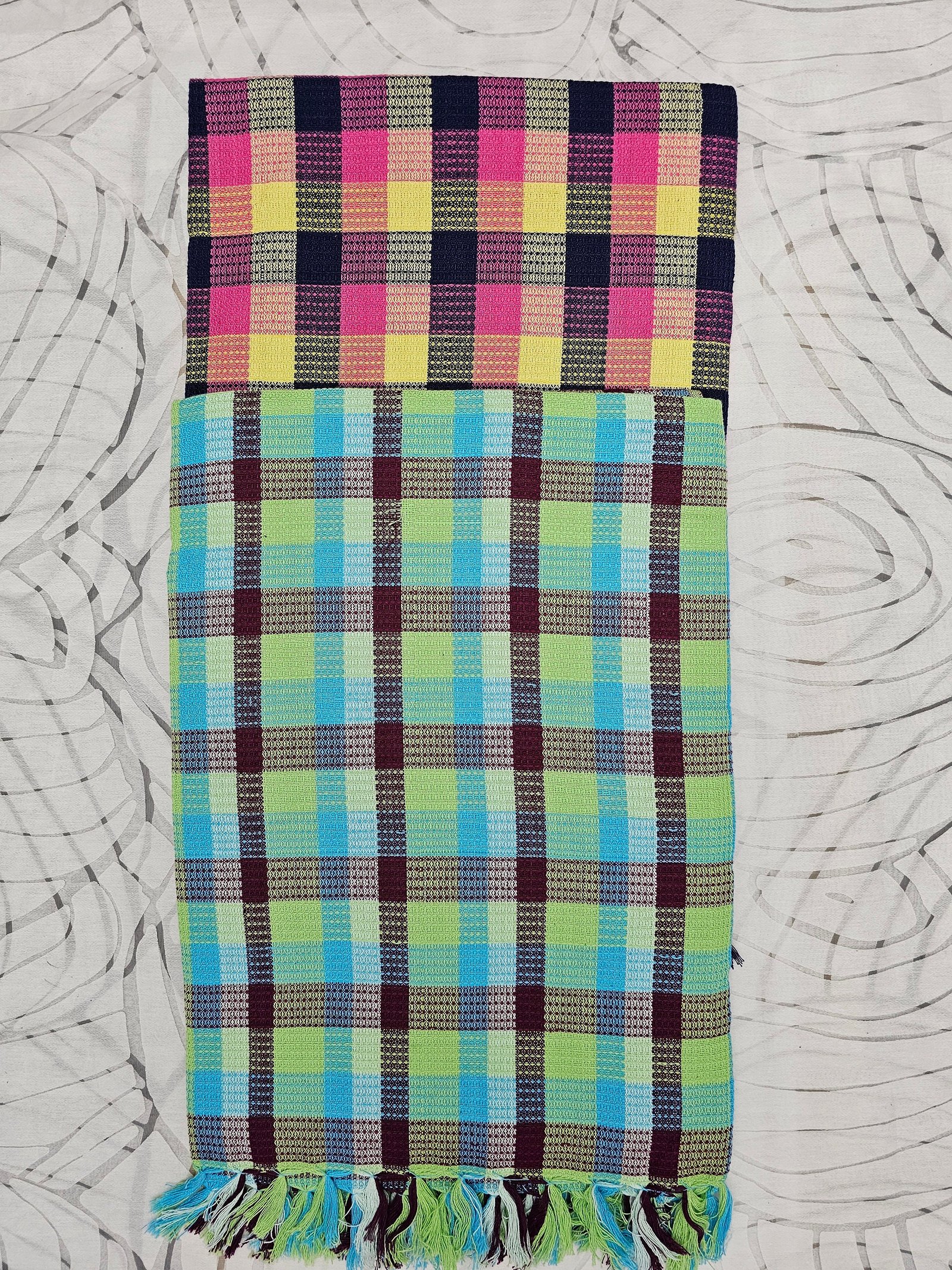 Caring for your Indian Handloom Bath Towel is simple. We recommend washing them before first use, as the colors might bleed initially. However, you can trust that they will become more reliable and absorbent after a few uses. They are machine washable, making them easy to maintain. You might notice slight irregularities in the weave – these are not defects, but the unique character of handloom, adding authenticity and charm to your towel.