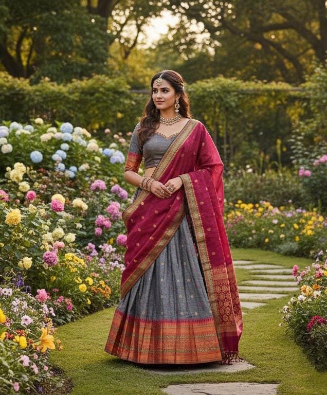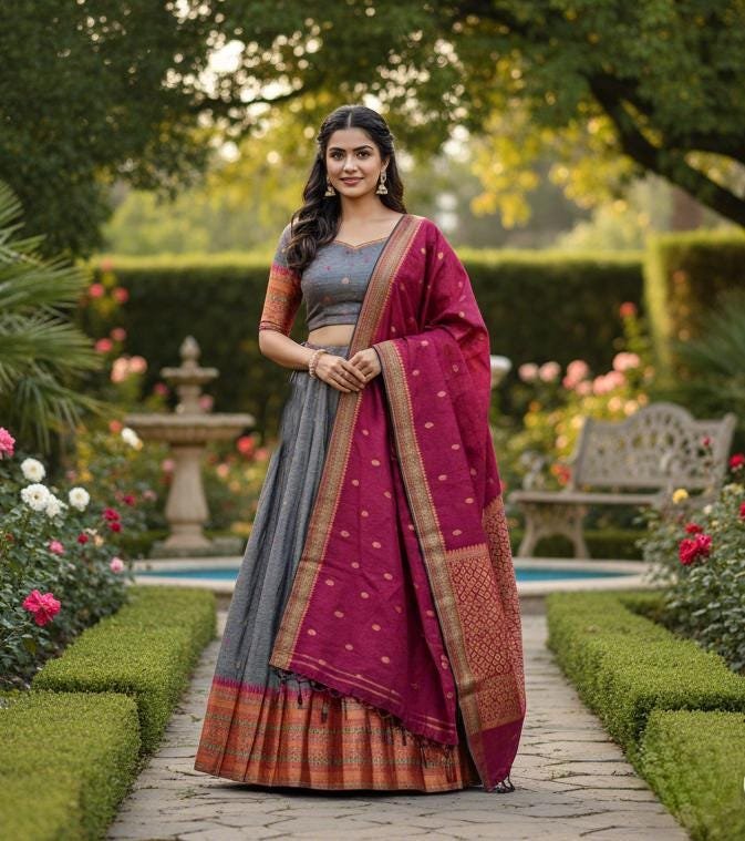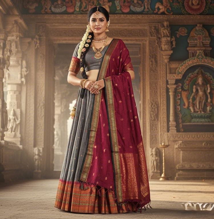 Narayanpet Lehenga: Fully Stitched Indian Zari Half SareeNarayanpet Lehenga: Fully Stitched Indian Zari Half Saree