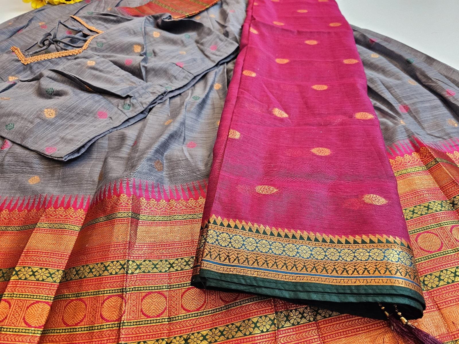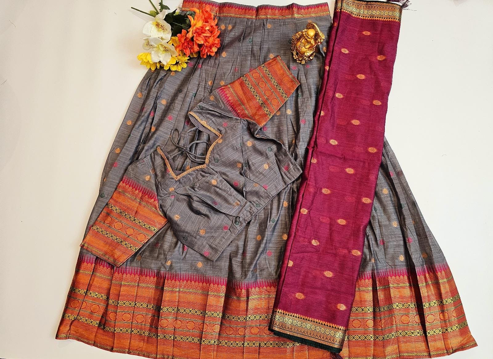 Ready To Wear Fully Stitched Indian Ethnic Trendy Narayanpet Half Saree sets for Girls/Teens/Women