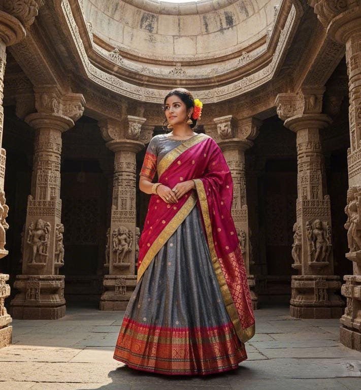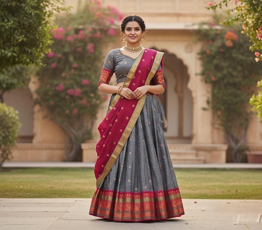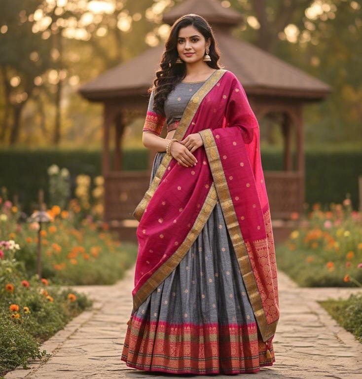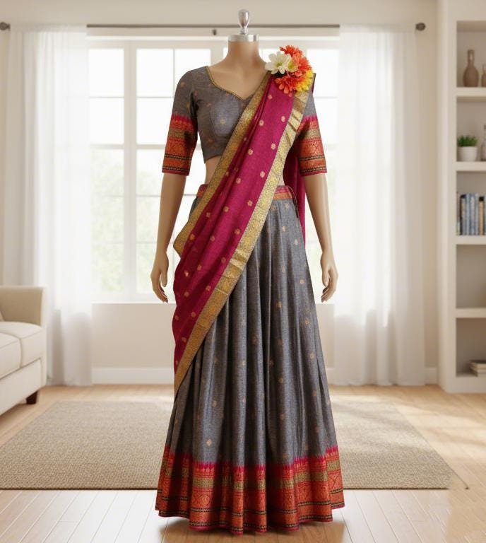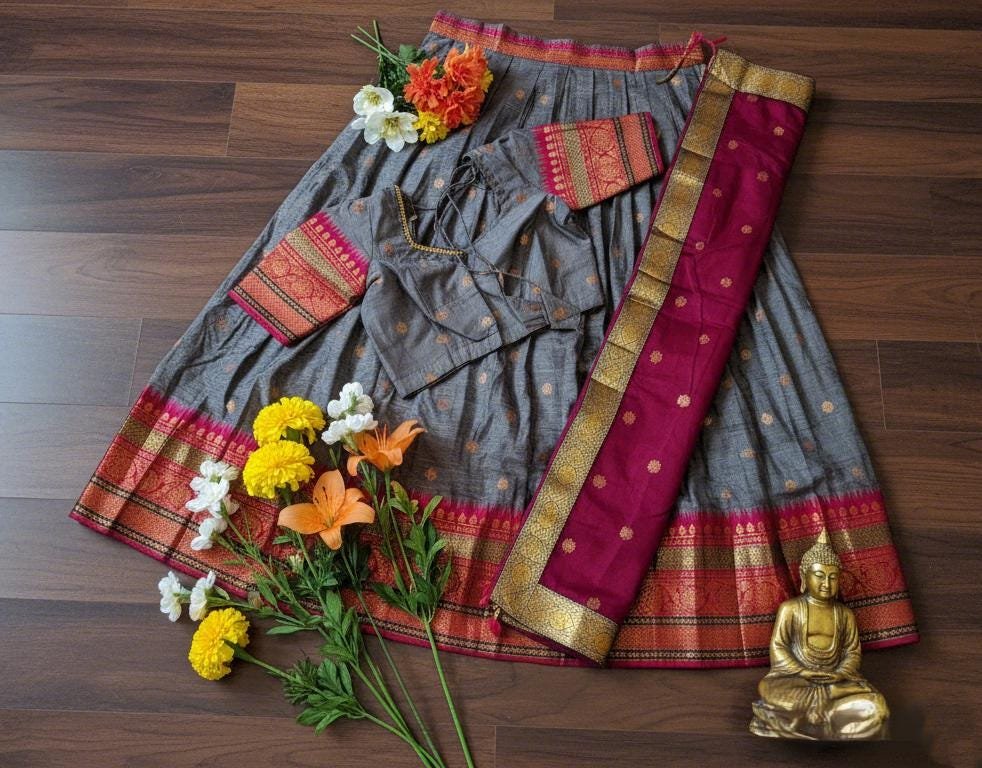 Ready To Wear Fully Stitched Indian Ethnic Trendy Narayanpet Half Saree sets for Girls/Teens/Women