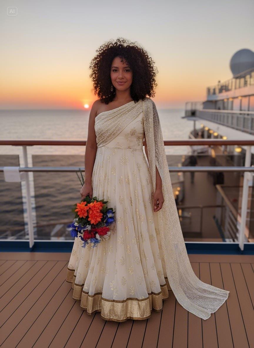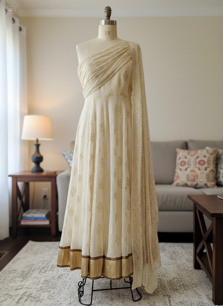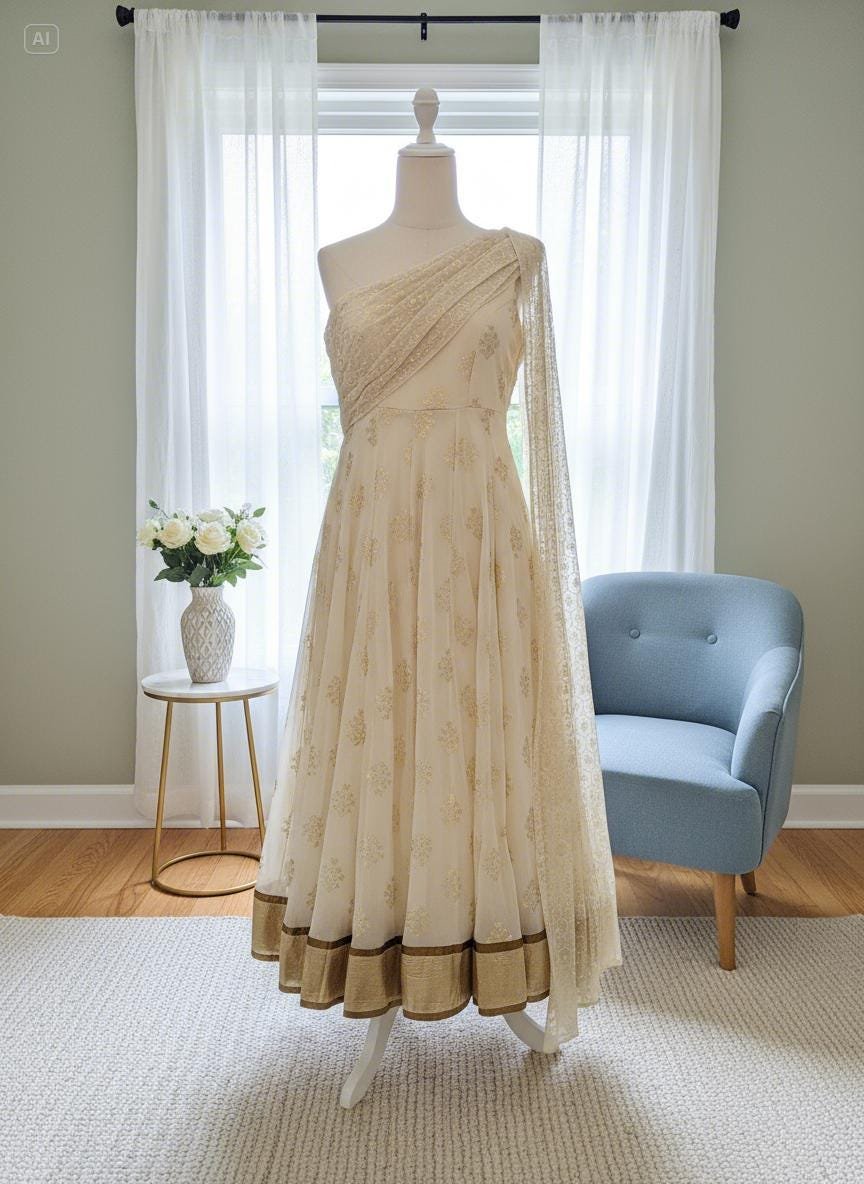 ✨ Cream & Gold Anarkali Gown with Matching Dupatta