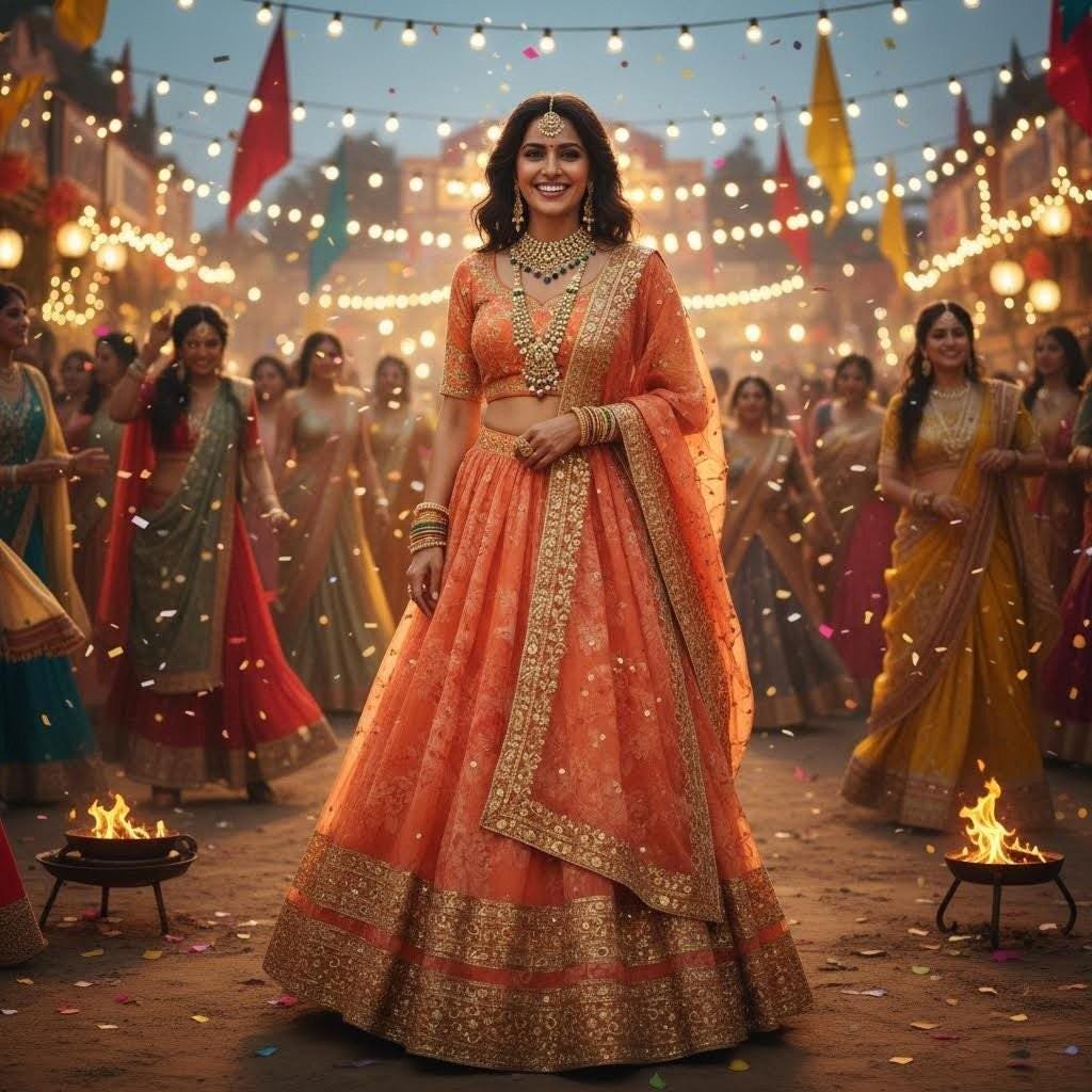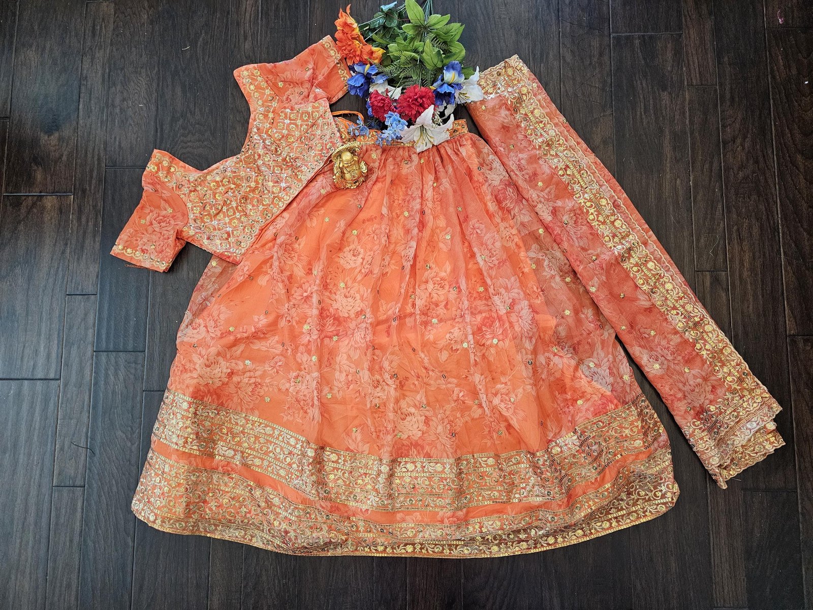 Orange Floral Embroidered Lehenga Set • Indian Bridal Outfit
