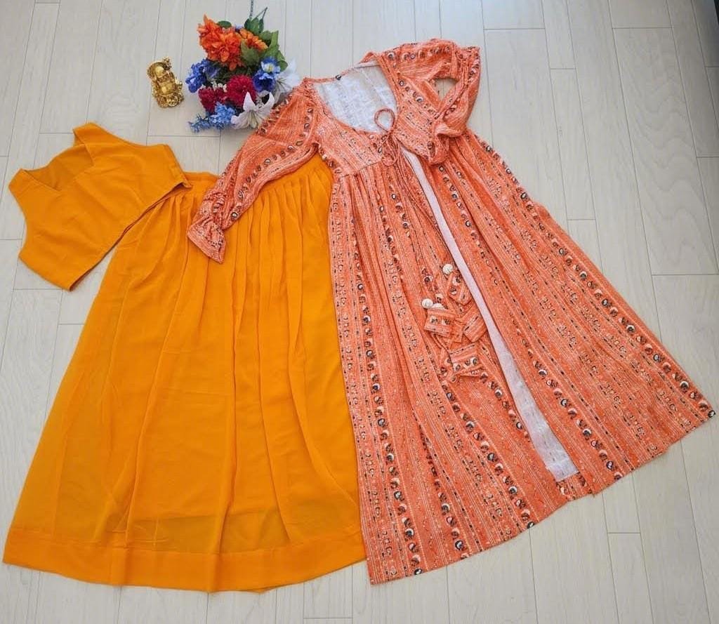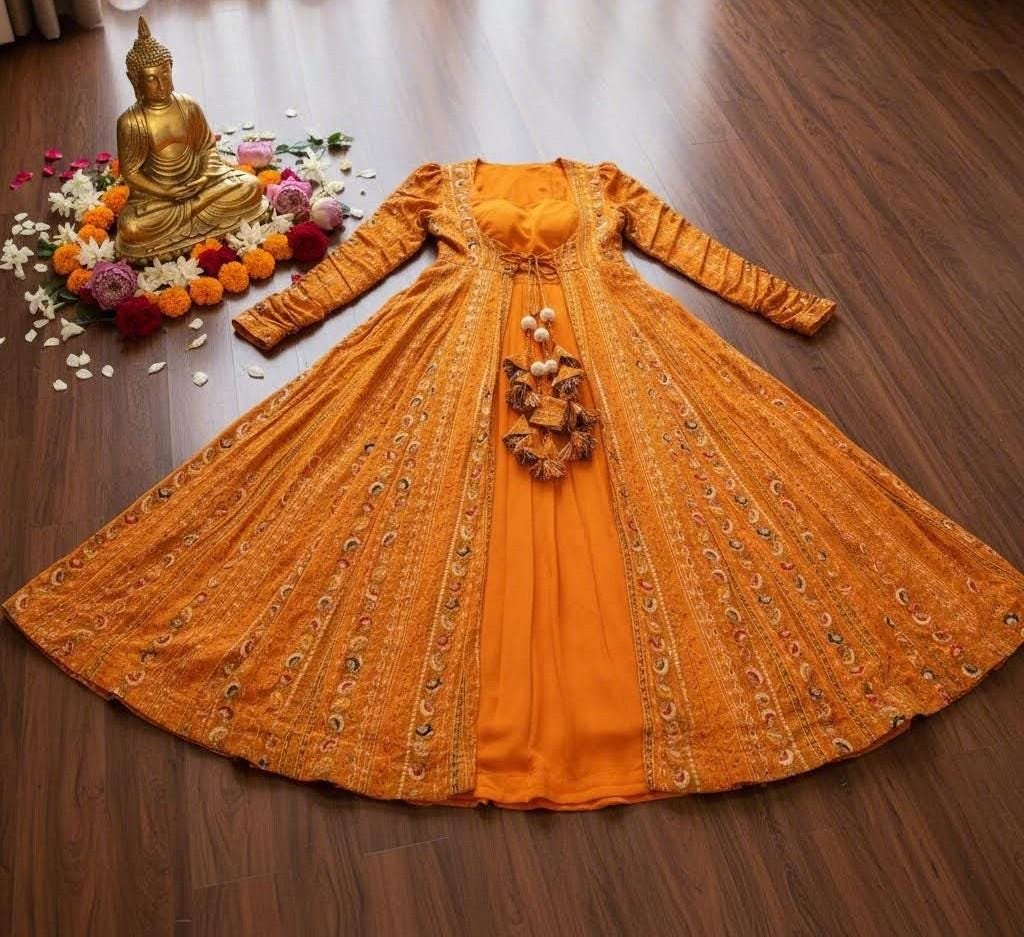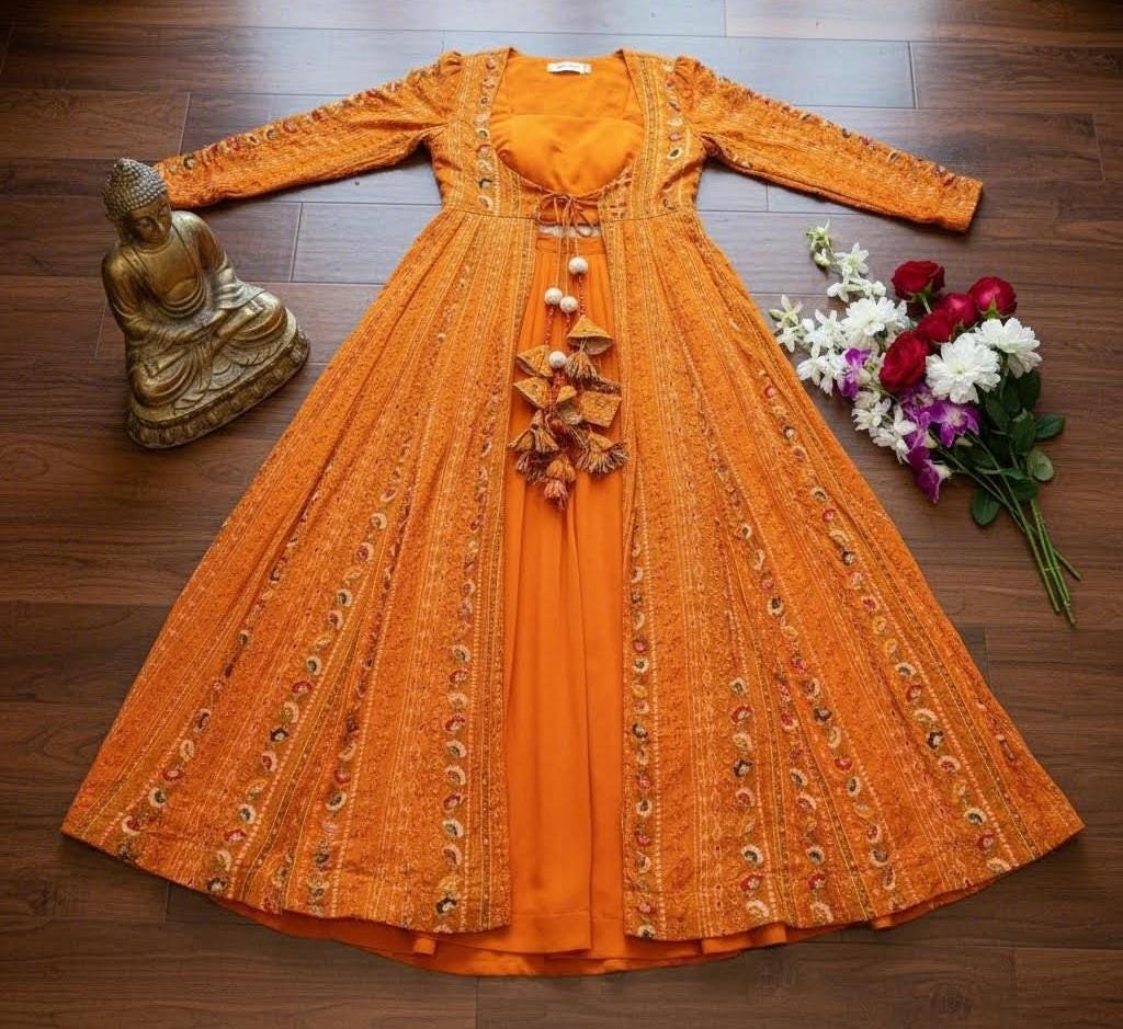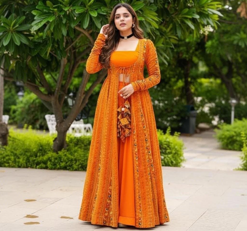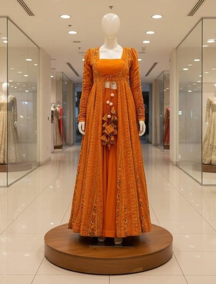 Elevate your festive style with this stunning 3-piece Orange Anarkali Set, beautifully designed for weddings, parties, festivals, and special celebrations. This outfit features a vibrant modern look blended with classic Indian elegance — perfect for anyone who wants to stand out gracefully.