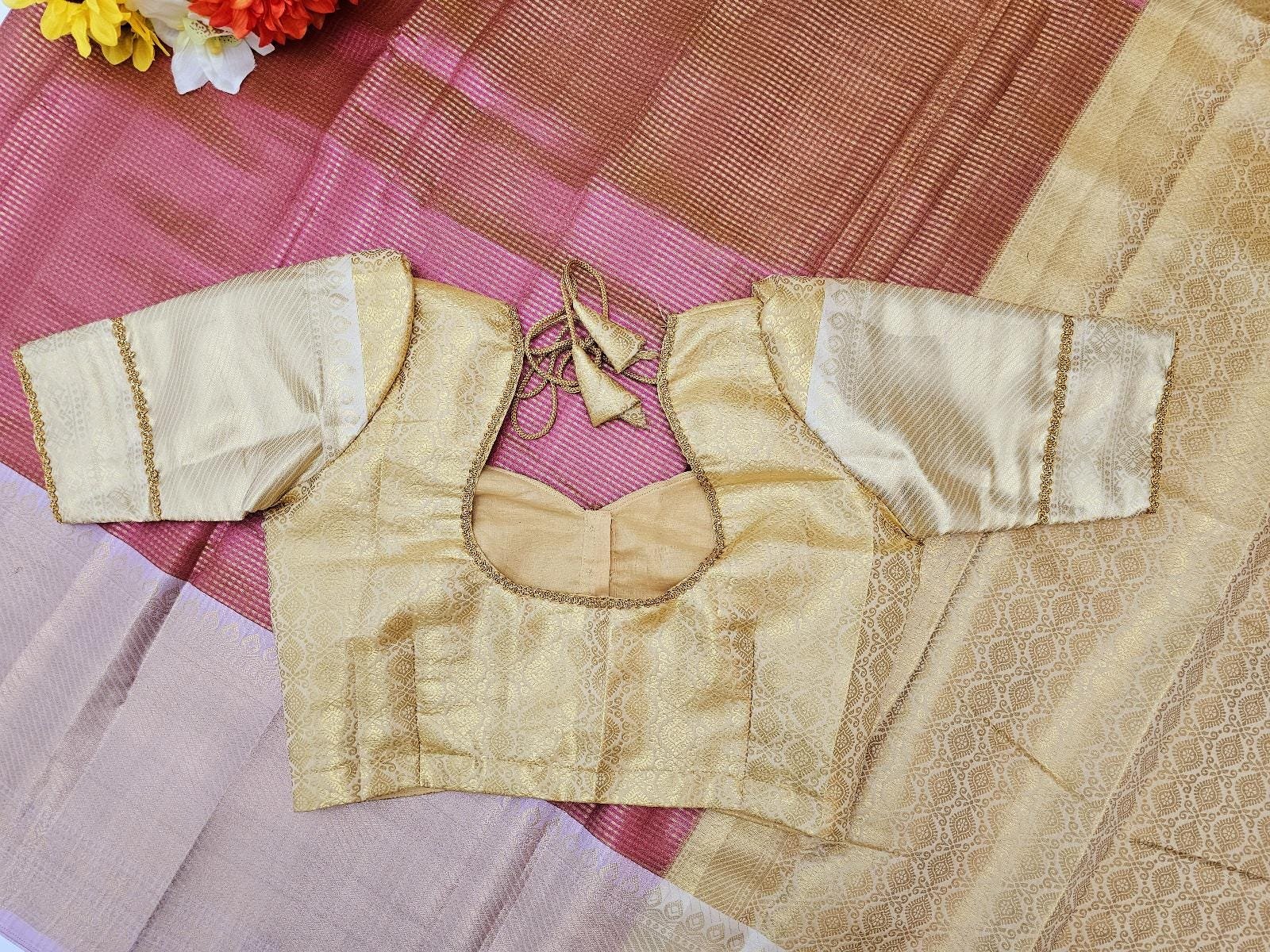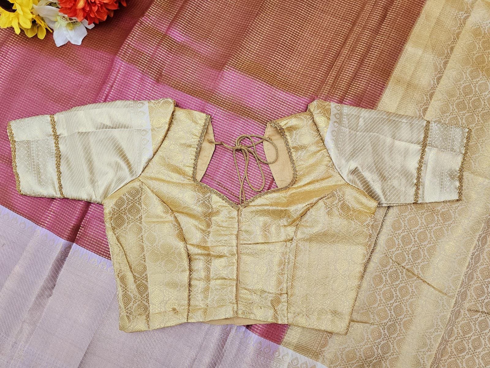 BLOUSE : BEAUTIFUL STITCHED DESIGNER BORDER BLOUSE WITH DANGLINGS.