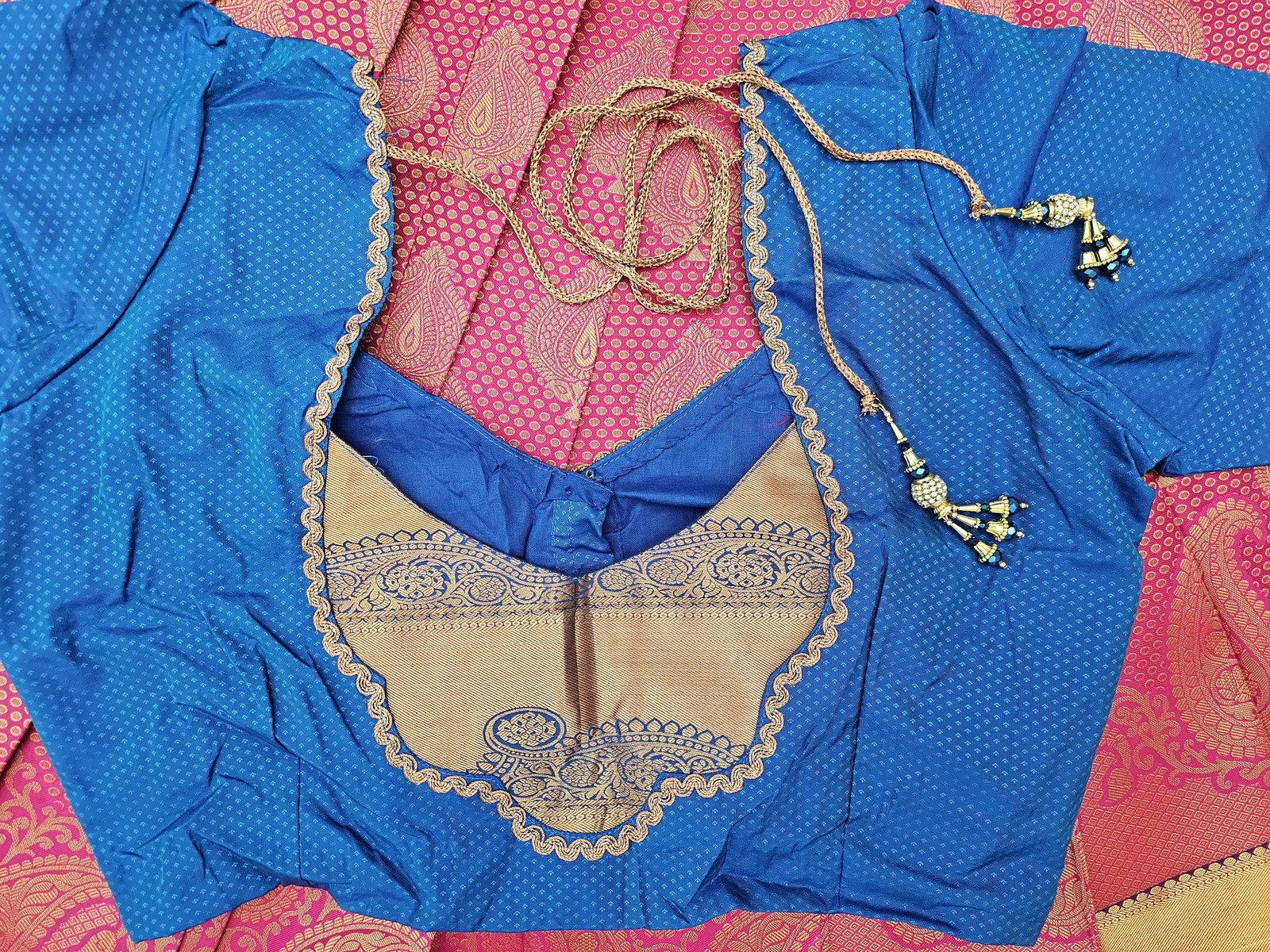 BLOUSE : BEAUTIFUL STITCHED DESIGNER BORDER BLOUSE WITH DANGLINGS.