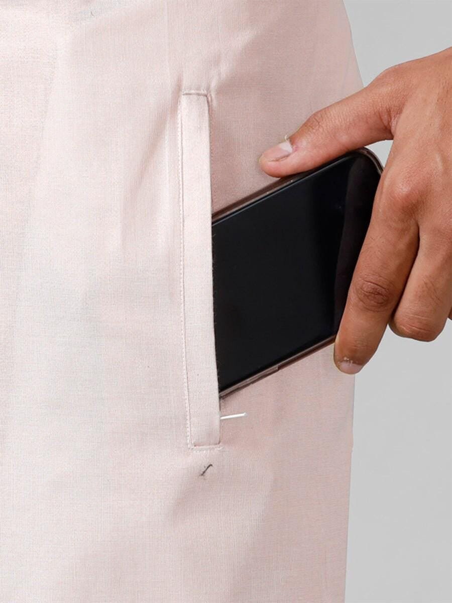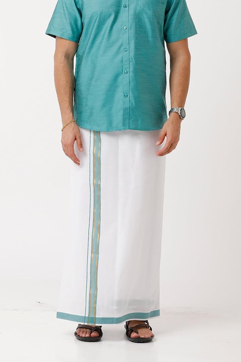 Add timeless tradition to your wardrobe with this men’s single dhoti, thoughtfully designed for comfort, functionality, and classic style. Made from 100% cotton fabric, this dhoti offers a soft, breathable feel that is suitable for long hours of wear. The elegant cream color is enhanced with a golden jari border, giving it a refined traditional appearance ideal for cultural events, temple visits, festivals, and daily traditional wear.