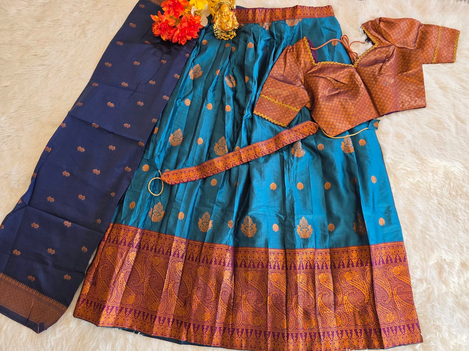 ready to wear trendy semi silk half sarees sets 4 piece fully stitched setReady To Wear 4 Piece Trendy Semi Silk Half Sarees Set – Blue and Navy Blue