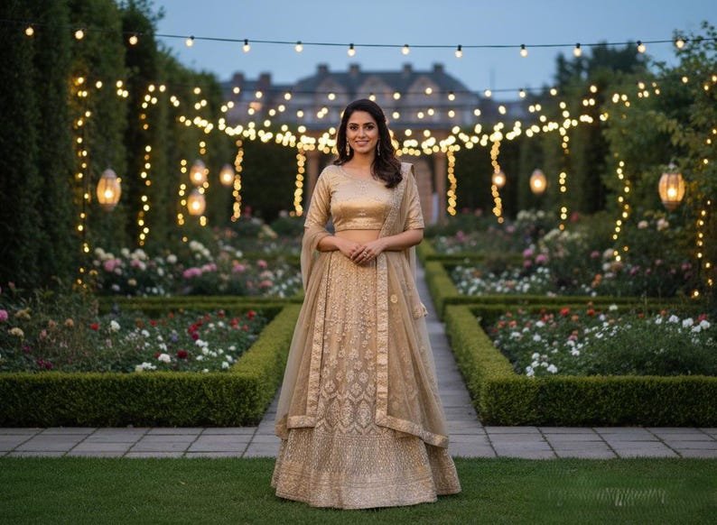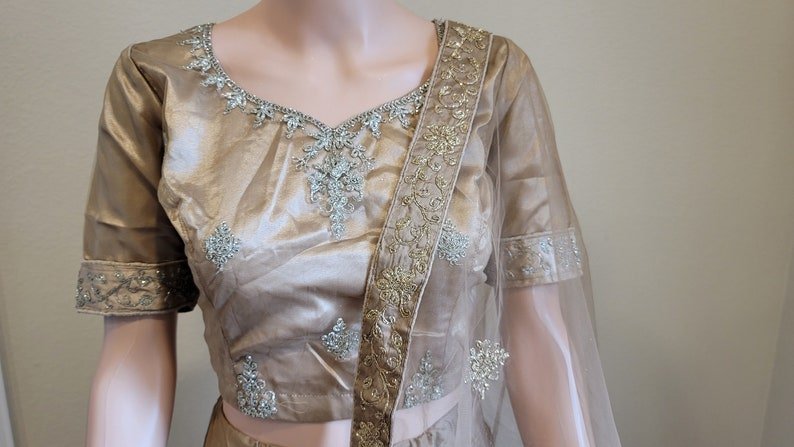 Ready To Wear Glitter Net Embroidery Lehenga Set-Biscuit Color