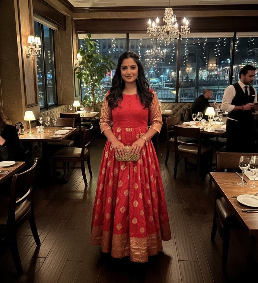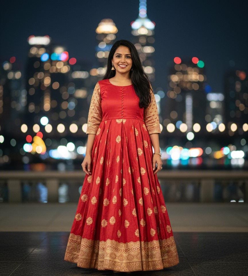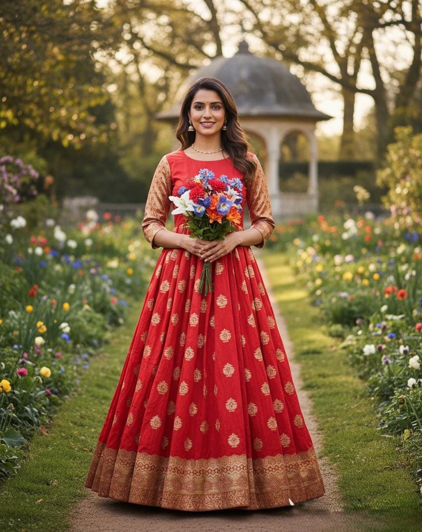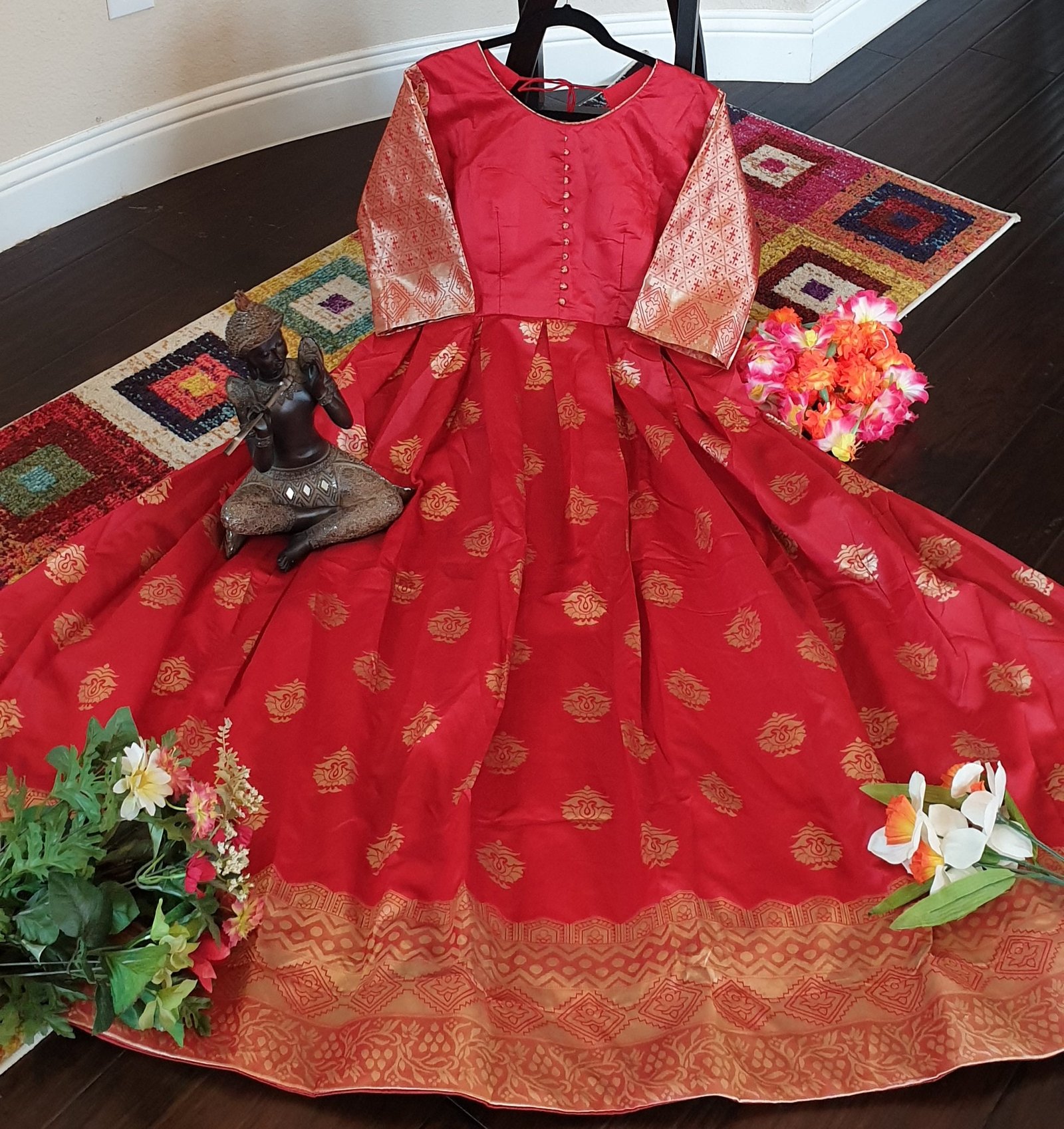 Rich Fabric: The gown is made from a high-quality Art Silk Blend fabric that mimics the luxurious texture and shine of pure silk.