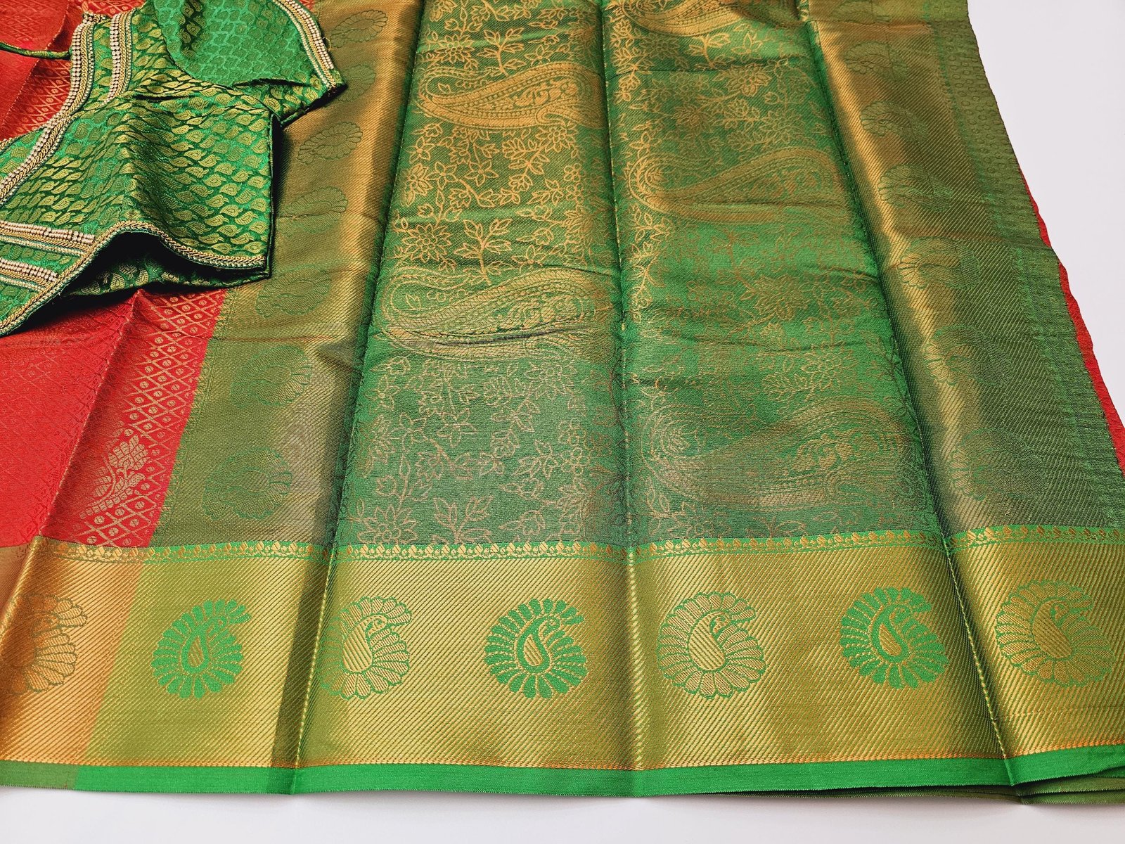 Elegant Silk Saree with intricate weaving work, accompanied by an unstitched running blouse and a FREE designer blouse, Perfect for Weddings/Parties.