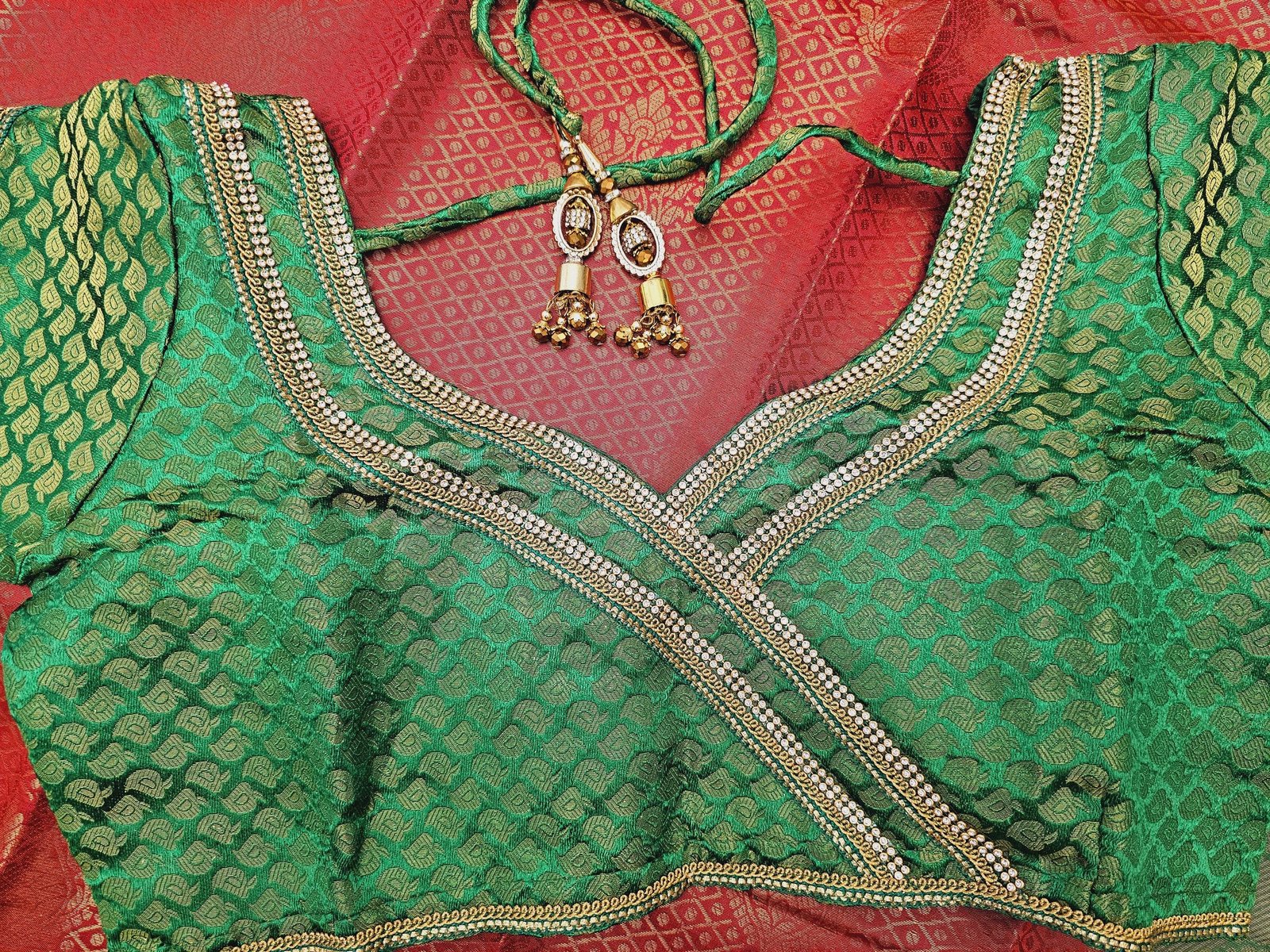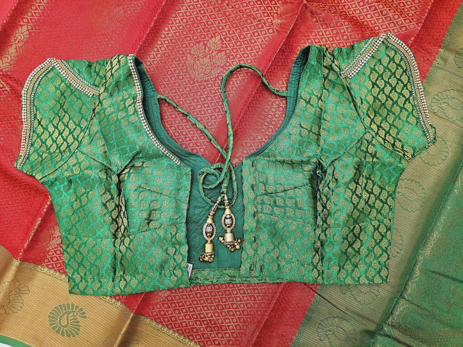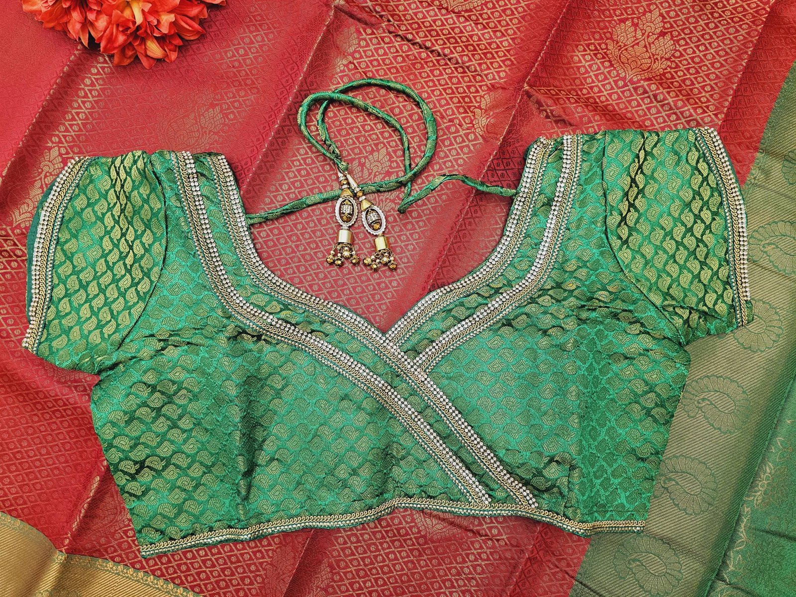 BLOUSE : BEAUTIFUL STITCHED DESIGNER BORDER BLOUSE WITH DANGLINGS.