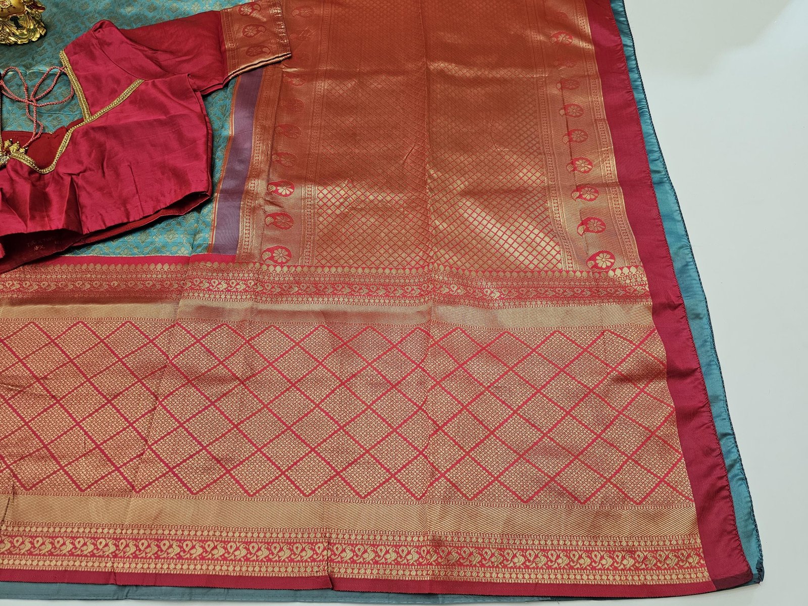 Elegant Silk Saree with intricate weaving work, accompanied by an unstitched running blouse and a FREE designer blouse, Perfect for Weddings/Parties.