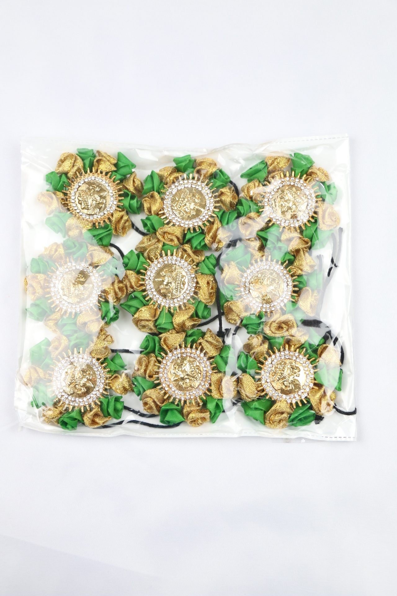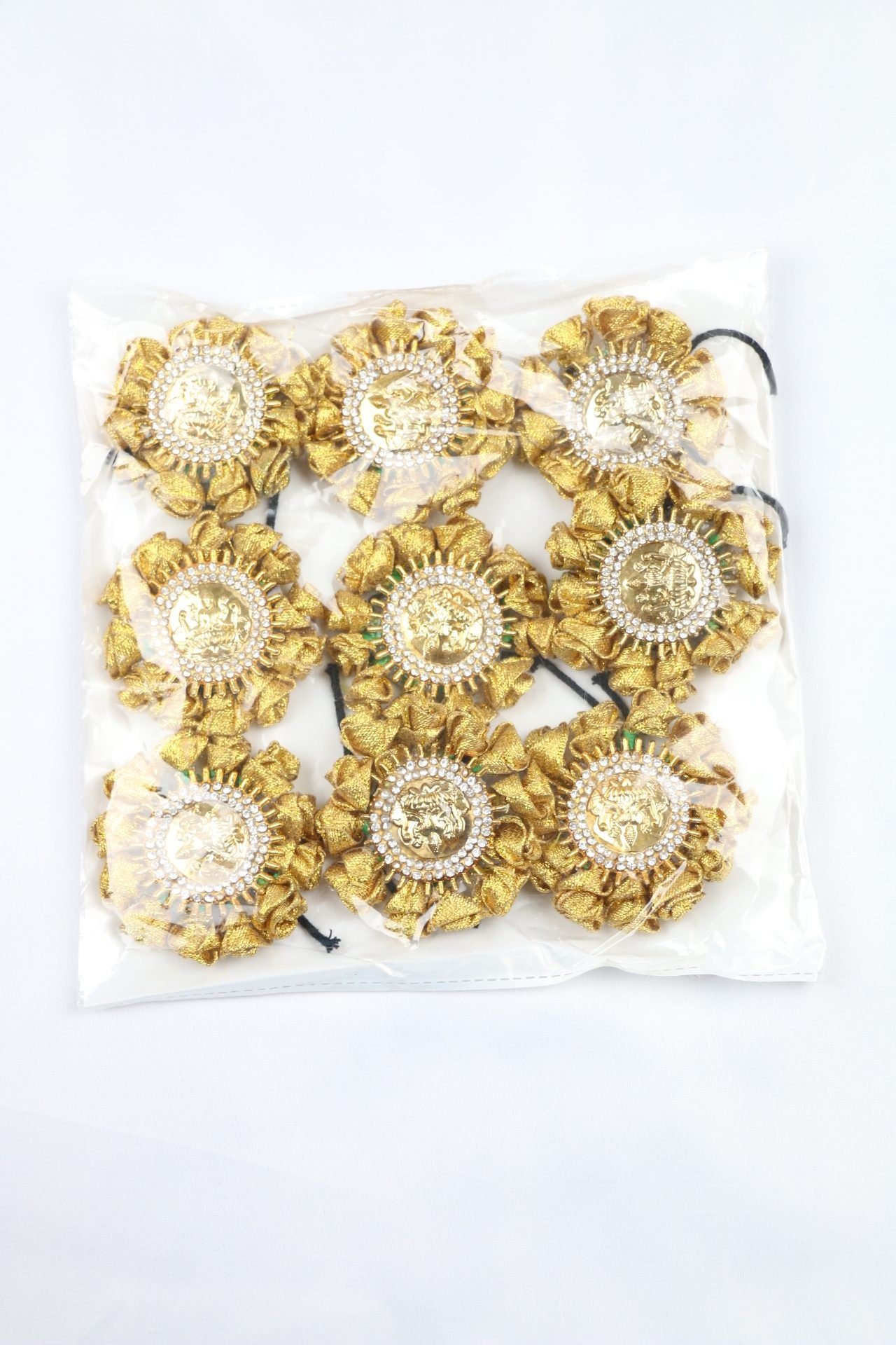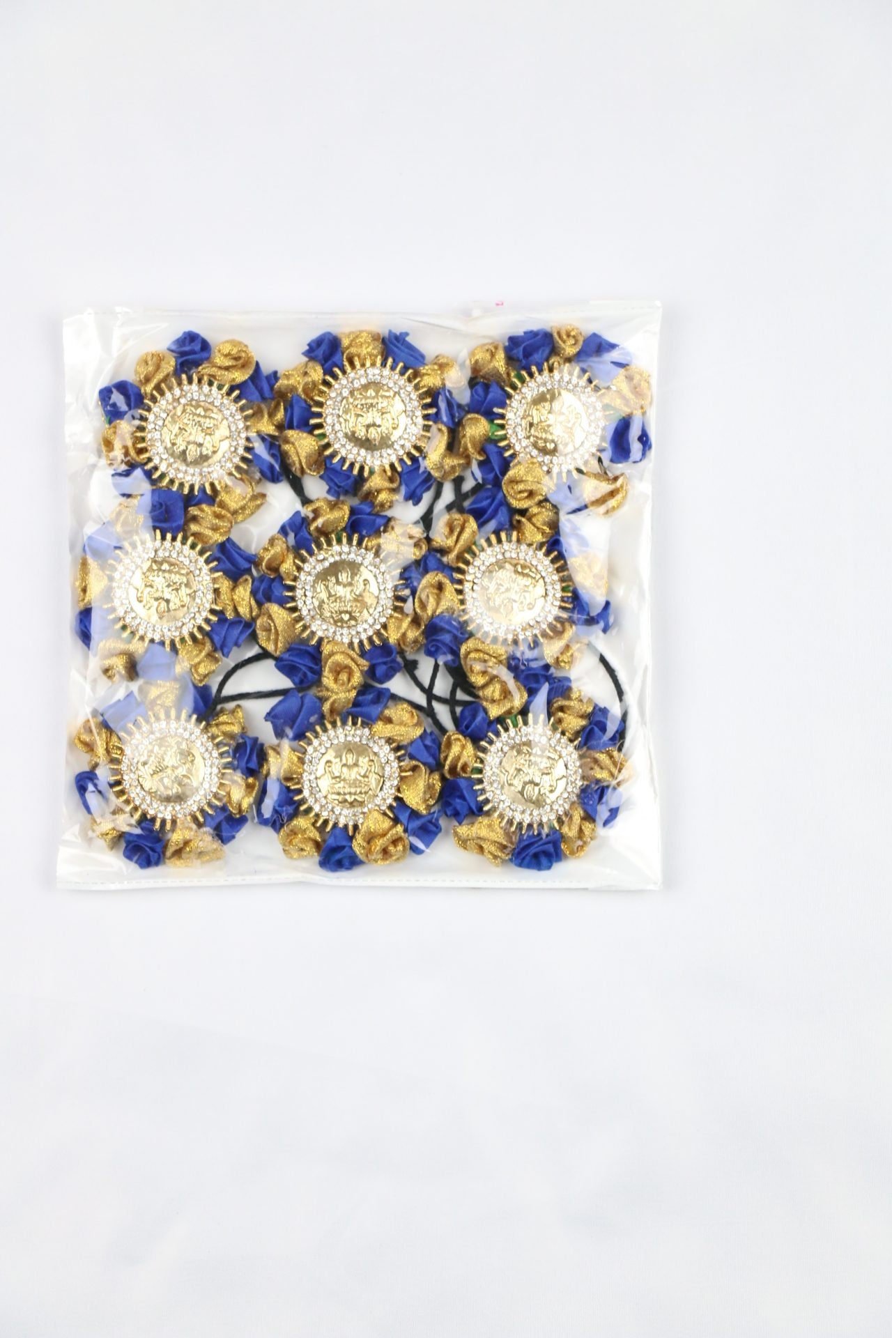 Studded with Lakshmi pendants and white stones.